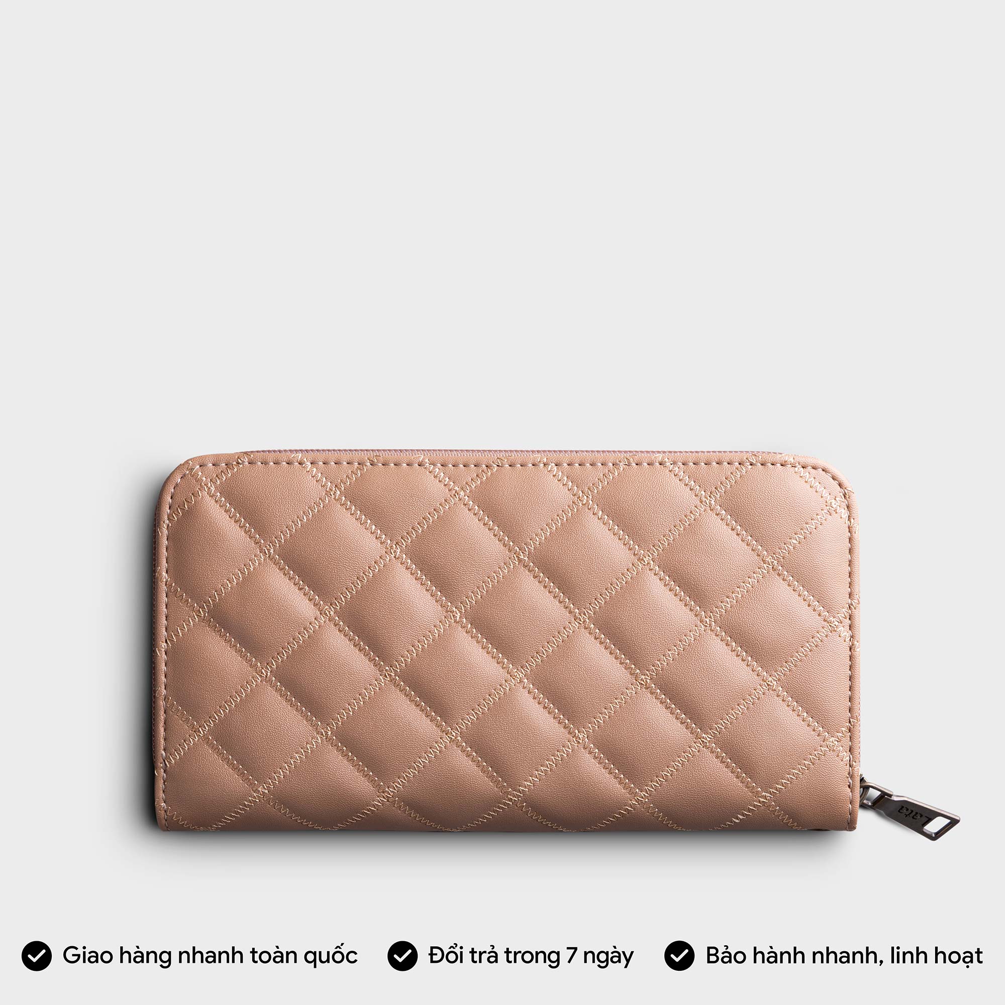 Ví da nữ cầm tay chần bông hình thoi Lata VN73 được thiết kế kiểu dáng lạ mắt, nhưng không kém phần thời trang, sang trọng. Chiếc ví được viền chỉ chắc chắn, bên trong có đầy đủ các ngăn để bạn đựng tiền, điện thoại, và một số vật dụng quan trọng khác. Sản phẩm có thể mang đi làm, đi tiệc, hoặc sử dụng hằng ngày đều phù hợp.