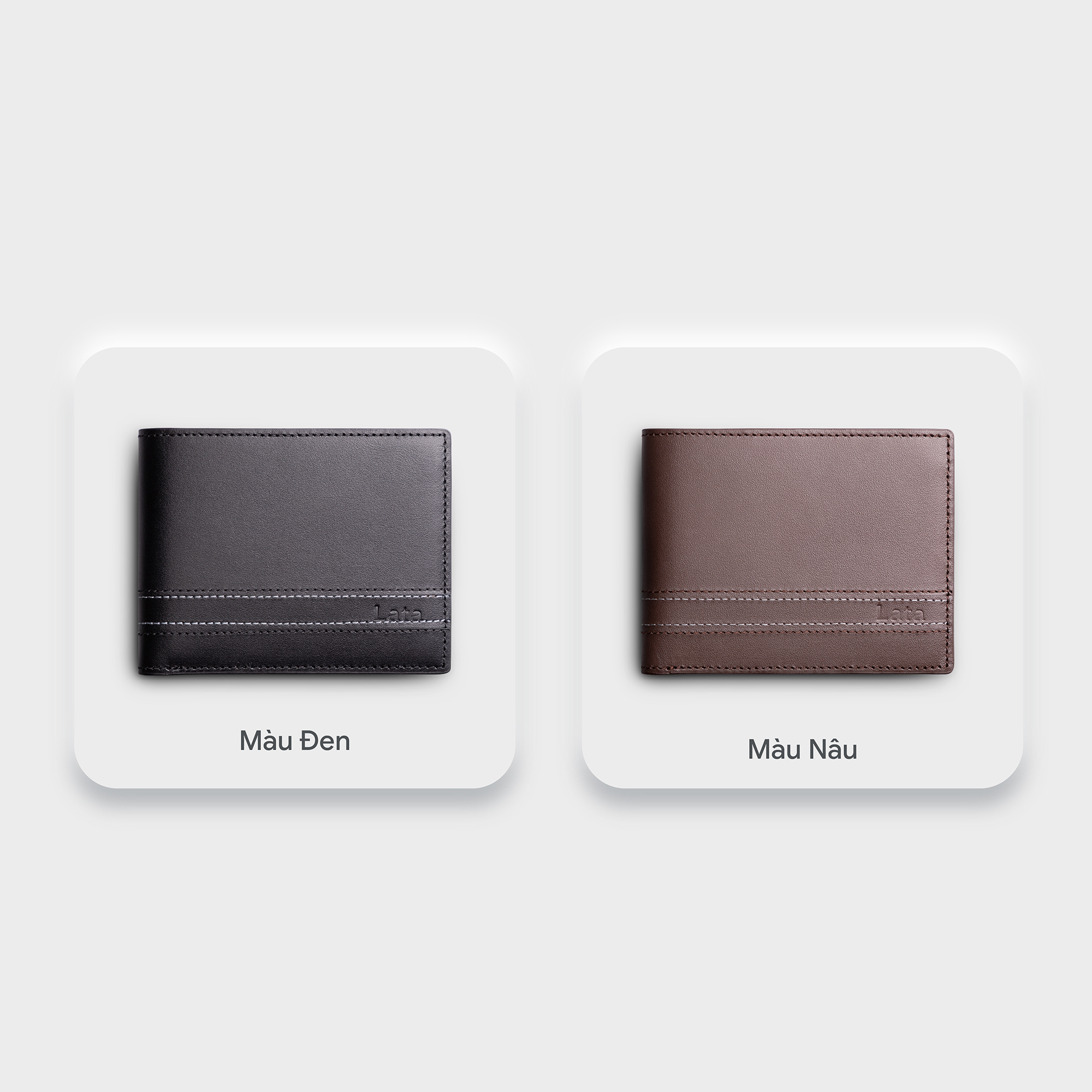 Ví da nam dáng ngang Lata LVN121 được thiết kế tối giản, dáng ví truyền thống nhưng được phối thêm 1 ngăn phụ ở mặt sau của ví có thể bỏ thẻ card. Chất liệu