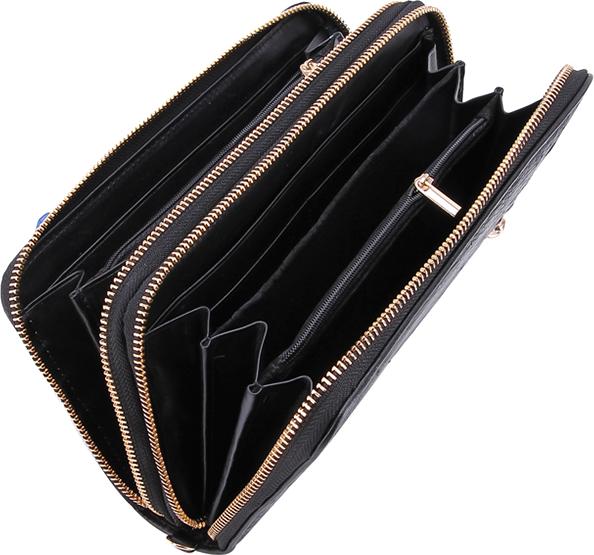 Ví/Bóp nữ da bò vân cá sấu Huy Hoàng 2 gấp màu đen 3116
