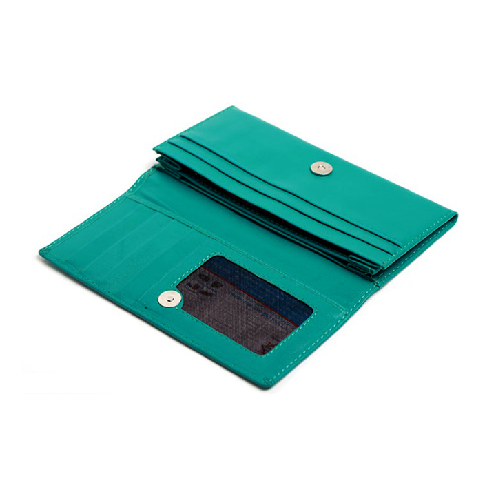 Ví/Bóp nữ da bò Huy Hoàng 3 gấp lửng màu xanh 3168