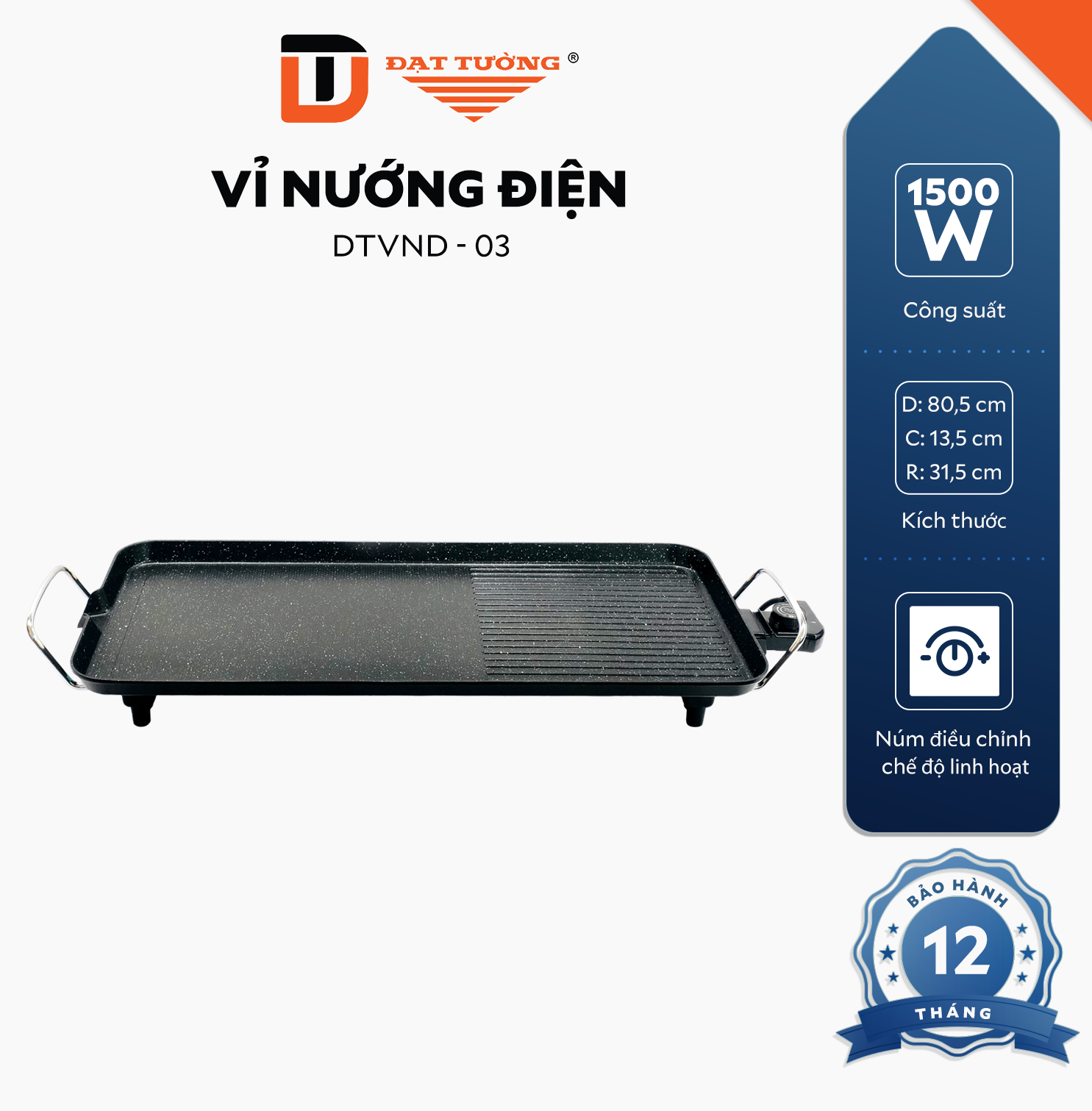✨Vỉ Nướng Điện Đạt Tường 63x13x29.6cm DTVND01,02.03 - Hàng Chính Hãng - DTVND02