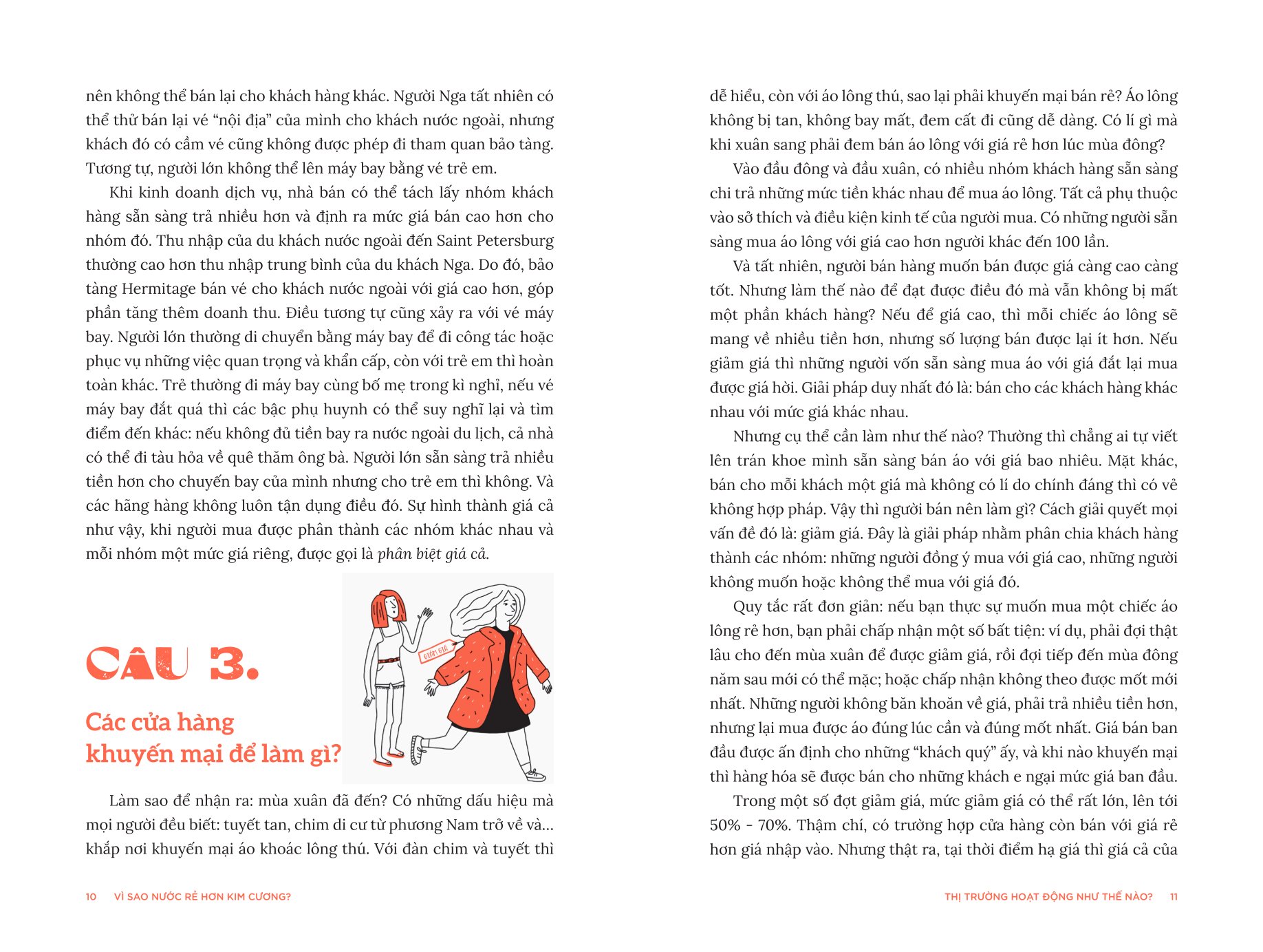 Đã bao giờ bạn tự hỏi: Tại sao dâu tây thường đắt hơn vào mùa đông, hay giá cả khi đi biển nghỉ mát lại đắt hơn vào mùa hè? Tại sao chúng ta phải xếp hàng dài trong viện bảo tàng hoặc siêu thị? Tại sao nhiều lúc chúng ta được đi tiêm miễn phí, nhưng đi chữa răng lại phải bỏ tiền? Chúng ta cần đóng thuế để làm gì và đóng cho ai?... Rất nhiều thắc mắc trong cuộc sống hằng ngày đều liên quan đến quy luật kinh tế, nhưng đôi khi chúng ta gần như không hề nhận ra. Vì Sao Nước Rẻ Hơn Kim Cương? - 48 Câu Hỏi “Xóa Mù” Kinh Tế Học chính là cuốn sách giải đáp những quy luật đó. Theo hình thức hỏi đáp, cuốn sách này sẽ giúp bạn dễ dàng hiểu được nền kinh tế đang vận hành ra sao, dù bạn là thanh thiếu niên hay người trưởng thành, đang là một người tiêu dùng, nhân viên công ty, một nhà tự doanh theo kiểu truyền thống hay đang ấp ủ ý tưởng khởi nghiệp… Bạn sẽ thấy kinh tế học không hề khô khan hay chỉ là chuyện của các chuyên gia. Nhận xét về cuốn sách: “Tác giả hơi khiêm tốn, cuốn sách này rất thú vị với độc giả trẻ, nhưng cũng thu hút sự quan tâm của người trưởng thành.” Giáo sư Vladimir Mau – nguyên Hiệu trưởng Học viện Hành chính Công và Kinh tế Quốc dân Nga, thành viên Đoàn Chủ tịch Hội đồng Kinh tế trực thuộc Tổng thống Liên bang Nga “Đây là một cuốn sách độc đáo, giải thích các khái niệm cơ bản của khoa học kinh tế bằng ngôn ngữ đơn giản, ví dụ từ cuộc sống hằng ngày. Tìm hiểu về kinh tế chưa bao giờ dễ dàng đến thế!” Giáo sư Sergei Guriev - Viện khoa học chính trị Paris