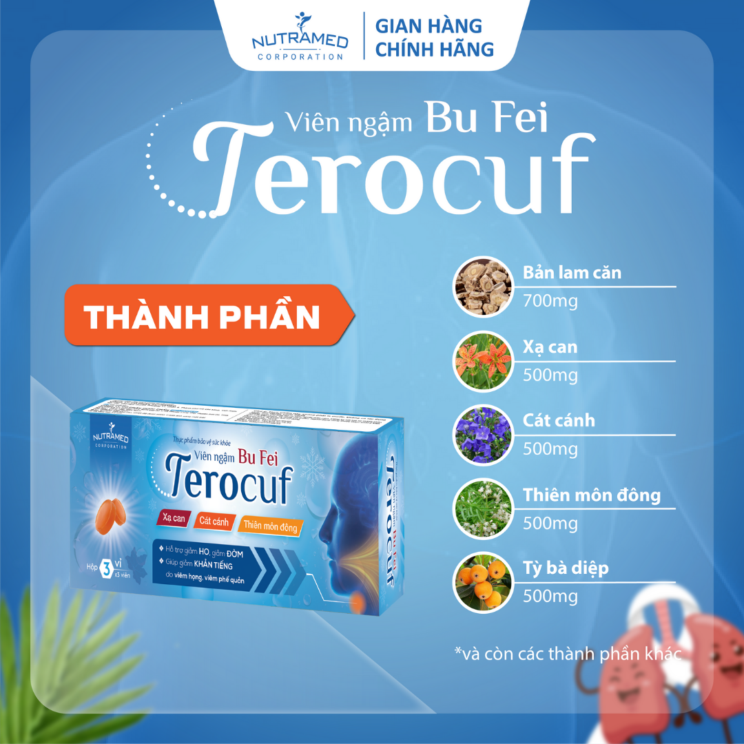 VIÊN NGẬM BỔ PHỔI BU FEI TEROCUF - Hỗ trợ giảm ho, đờm, khản tiếng, viêm họng và viêm phế quản