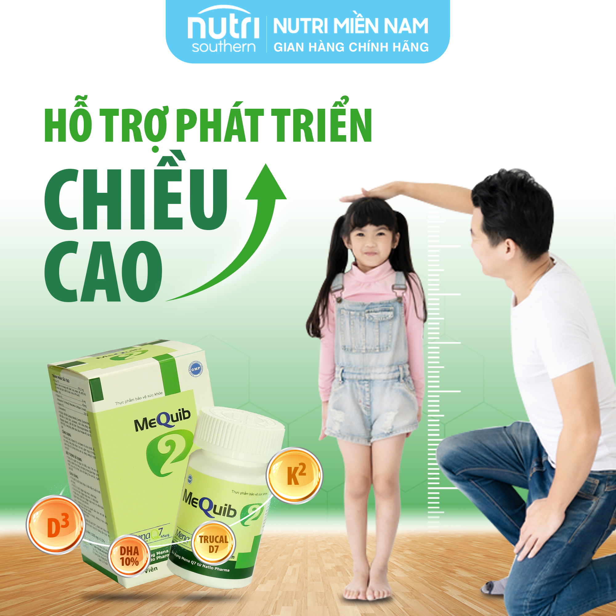 Vitamin D3K2 MK7 (MenaQ7) Và Canxi MEQUIB OST (Hộp 60 Viên) - Tăng Hấp Thu Canxi, Phát Triển Chiều Cao THÀNH PHẦN SẢN PHẨM: -Vitaminn K2 (Menaquinone-7 từ MenaQ7) 90mcg. -Vitamin D3 150IU. -Trucal D7 - Nguồn