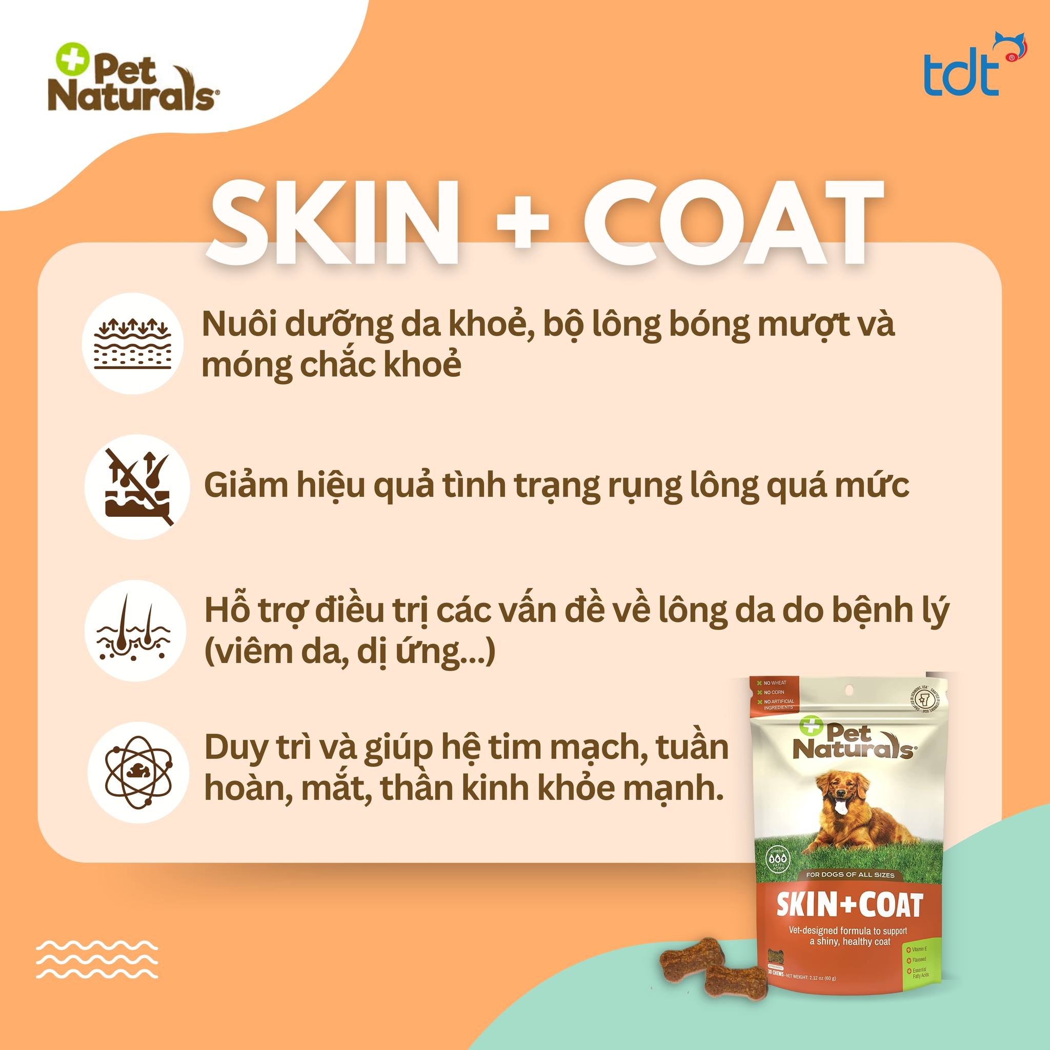 * Calci: cung cấp Canxi, Phospho, vitamin D3. Đáp ứng đầy đủ các nhu cầu về Canxi và khoáng chất cho chó mèo ở tất cả các giai đoạn. * Omega: cung cấp các axit