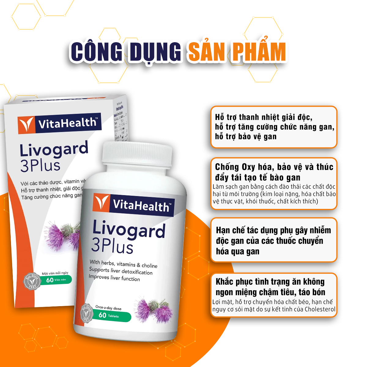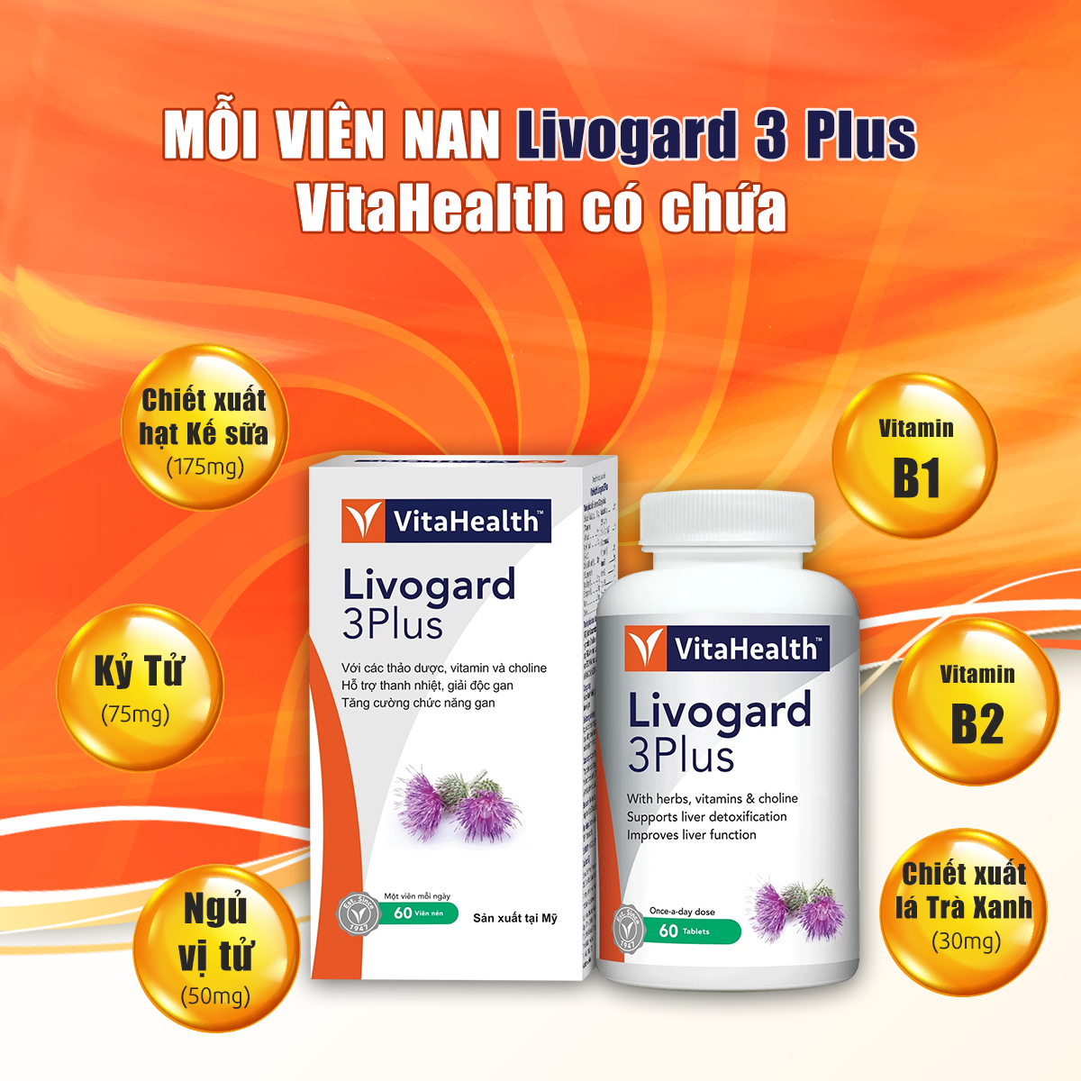 ✨Viên Uống Bổ Gan, Thải Độc Gan, Hỗ Trợ Viêm Gan VITAHEALTH Livogard 3Plus (60 Viên)