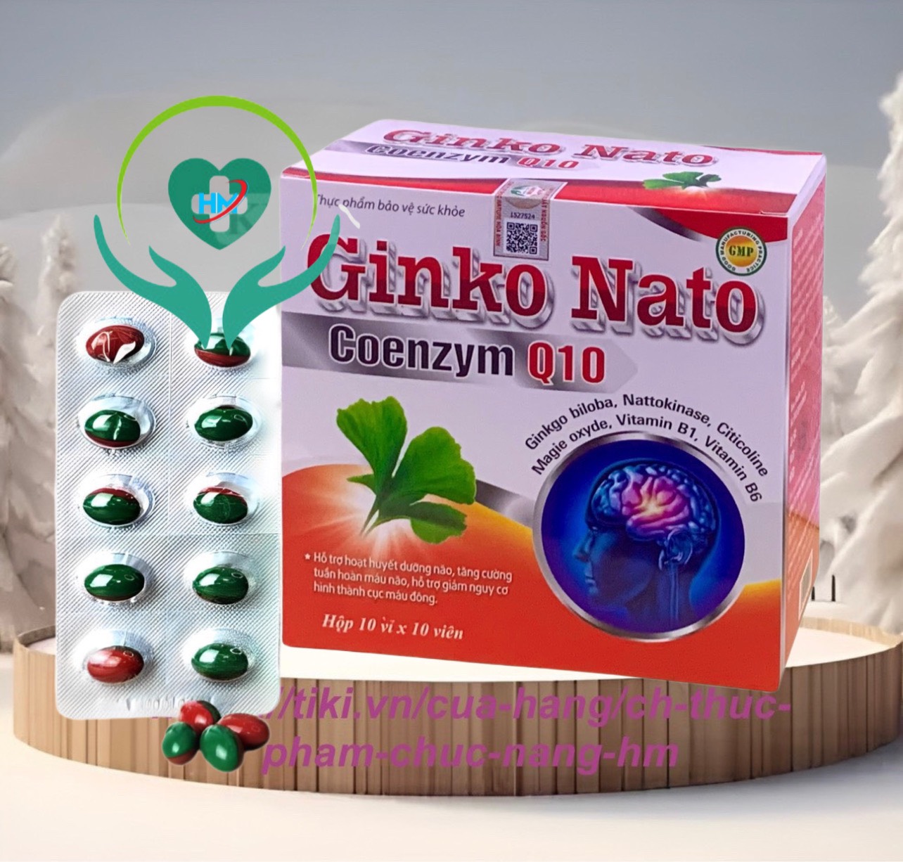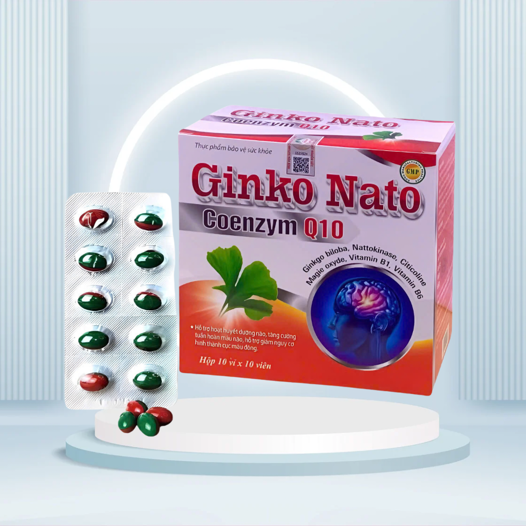 ✨Viên uống bổ não Ginko nato coenzyme q10 - Hộp 100 viên - Giúp hoạt huyết, giảm xơ vữa động mạch, tăng