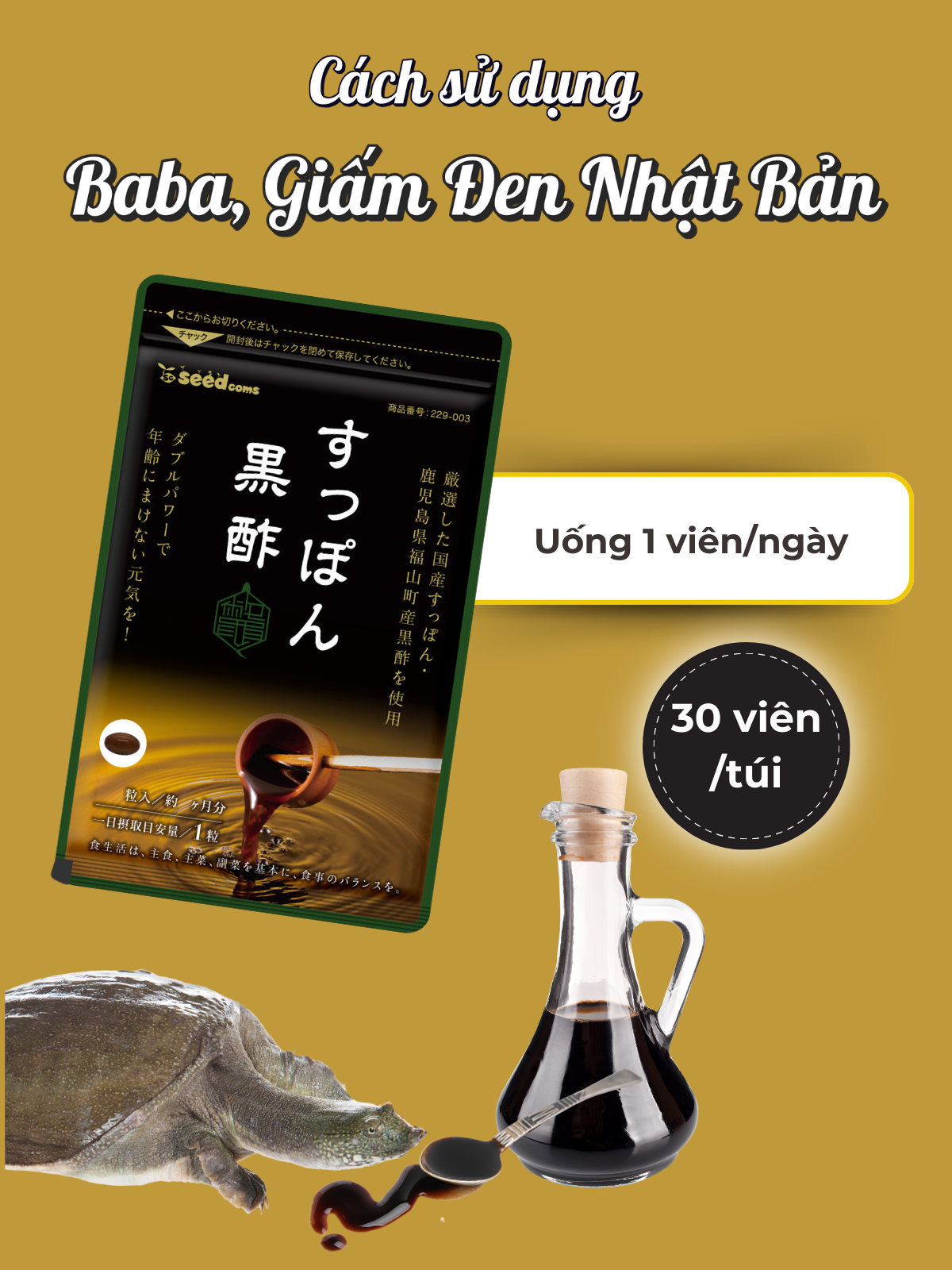 ✨Viên Uống Bổ Sung Baba, Giấm Đen Hỗ Trợ Phục Hồi Sức Khỏe, Giảm Căng Thẳng Mệt Mỏi Seedcoms Nhật Bản