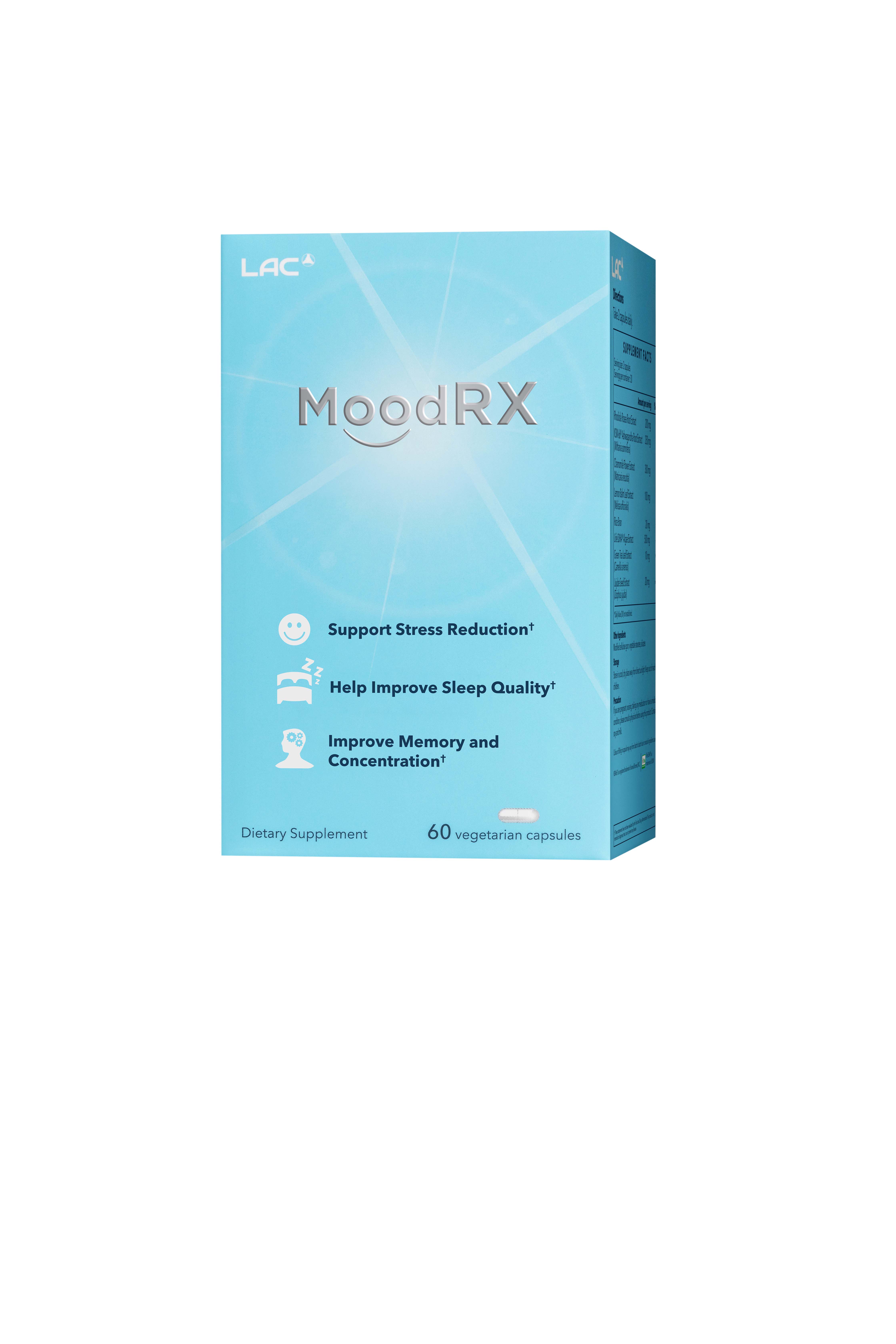 VIÊN UỐNG CẢI THIỆN TÂM TRẠNG LAC MOODRX (60 VIÊN) với công thức đặc biệt được chiết xuất từ các loại thảo dược và dưỡng chất giúp tăng cường sức khỏe tinh thần: - Ashwagandha (Nhân sâm Ấn Độ) & Rhodiola (Rễ vàng): Các adaptogen (chất thích ứng) tự nhiên giúp giảm căng thẳng, lo âu và tăng cường khả năng thích nghi với áp lực.