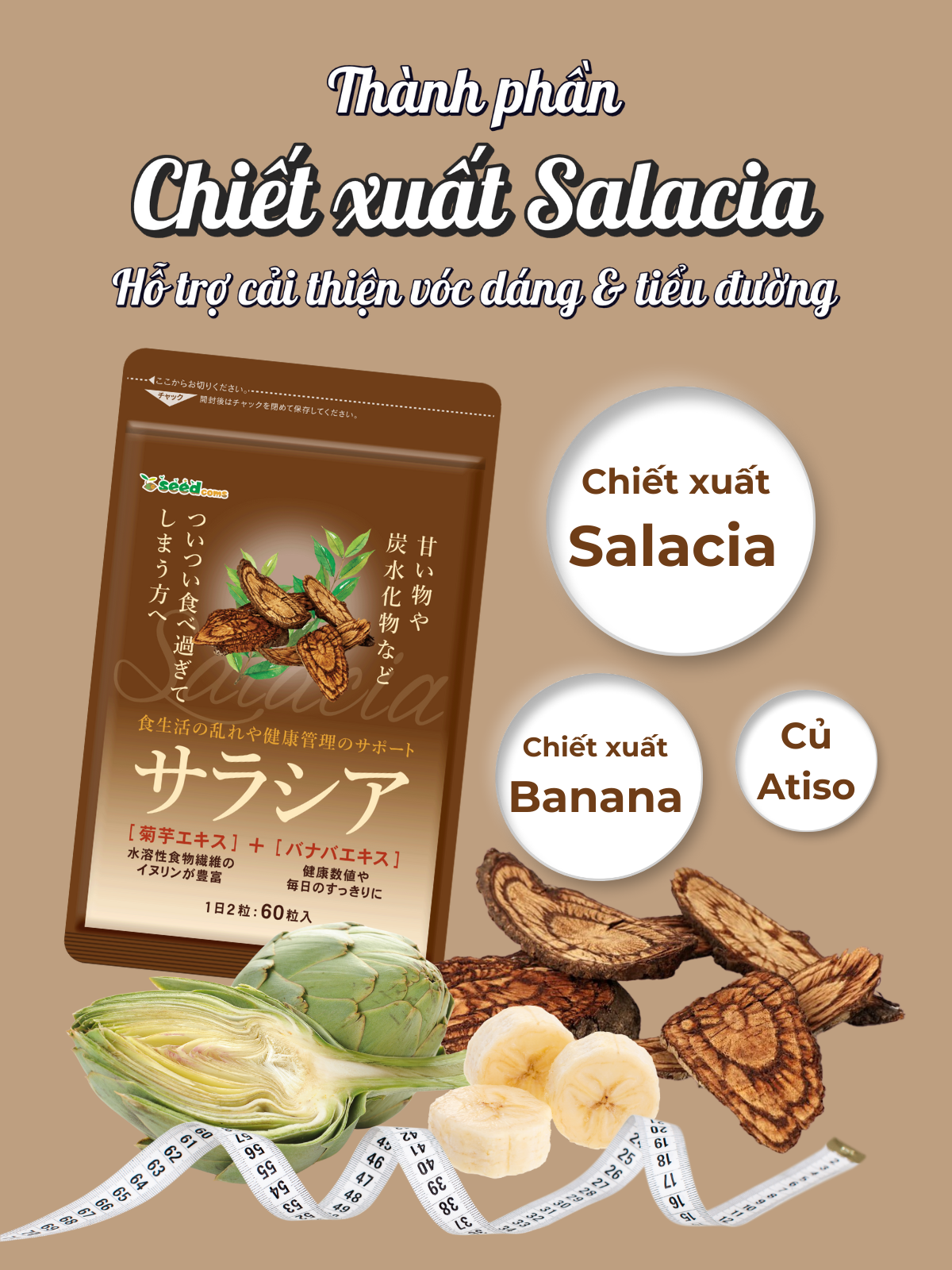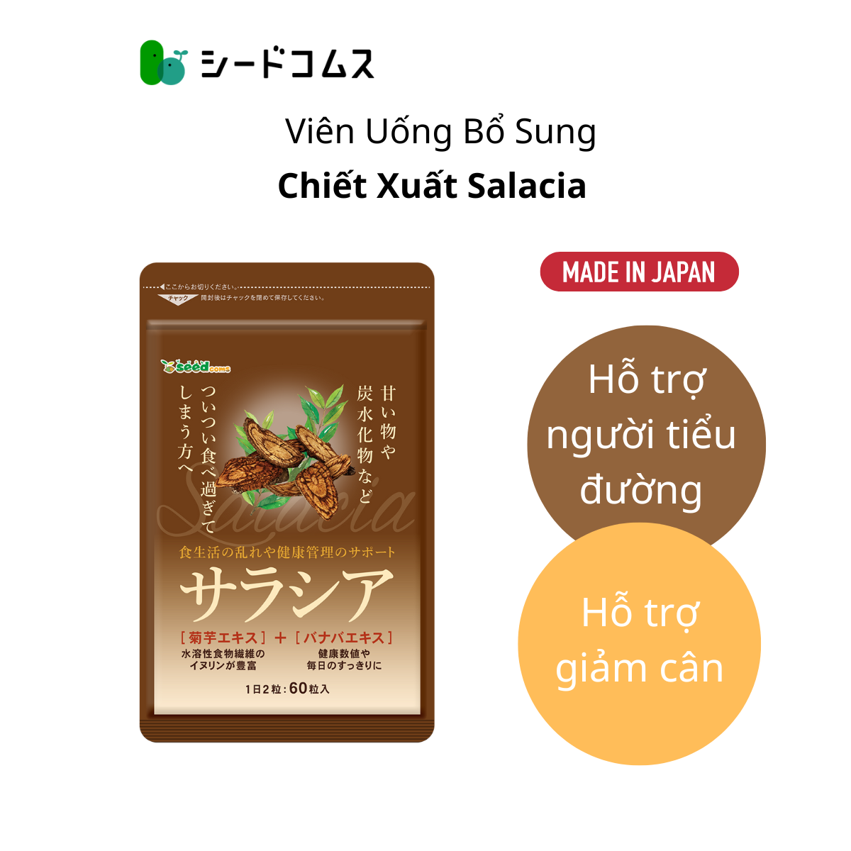 ✨Viên Uống Chiết Xuất Salacia Hỗ Trợ Cải Thiện Vóc Dáng,Tiểu Đường Seedcoms Nhật Bản
