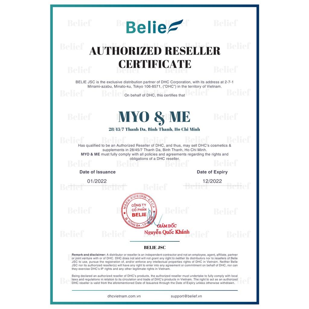 Thực phẩm này không phải là thuốc, không có tác dụng thay thế thuốc chữa bệnh Quy cách: túi 30 ngày (60 viên) Khối lượng viên: 200 ± 15mg Xuất xứ: hãng DHC Nhật Bản