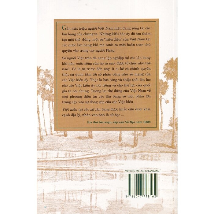 Số người Việt trên đã sang lập nghiệp tại các lân bang khi nào, cuộc sống của họ ra sao, được tổ chức như thế nào?. Có lẽ từ trước đến nay, ít ai kể cả chính quyền thật sự quan tâm tới số phận cũng như sứ mạng của các Việt kiều ấy. Thật là bất công và thiệt thòi lớn lao cho các Việt kiều ấy nói riêng và cho thế lực của quốc gia ta nói chung. Tương lai thế đứng của Việt Nam về mọi phương diện tại các lân bang sẽ một phần lớn trông cậy vào sự đóng góp của các Việt kiều.