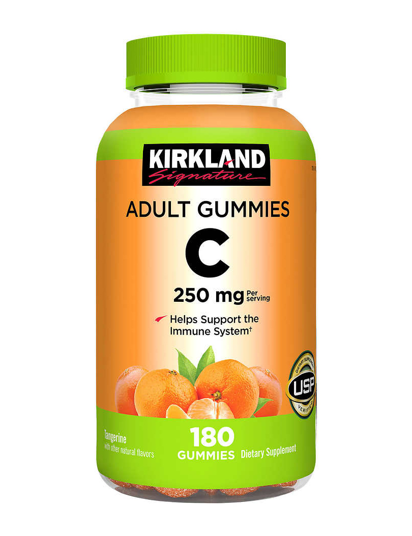 - Kẹo Vitamin C Mỹ Kirkland Signature Adult Gummies C 250mg 180 Viên dành cho người lớn Gummies được làm bằng hương vị trái cây tự nhiên. Những loại vitamin dạng kẹo dẻo thơm ngon này chứa 250 mg vitamin C mỗi khẩu phần. Vitamin C là một chất chống oxy hóa giúp hỗ trợ hệ thống miễn dịch và hoạt động để giúp trung hòa các gốc tự do trong cơ thể bạn. Ngoài ra, vitamin C hỗ trợ quá trình hấp thụ sắt và cần thiết để cơ thể sản xuất collagen, điều quan trọng đối với làn da khỏe mạnh