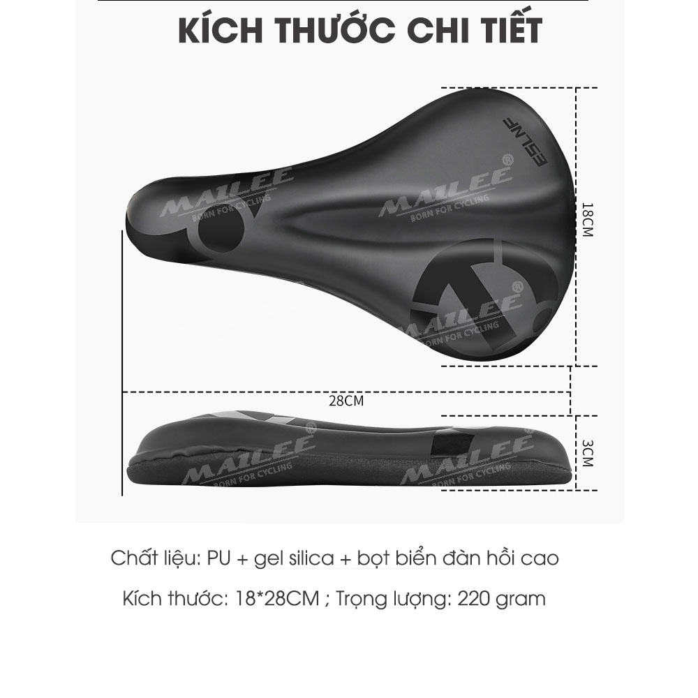 Vỏ Bọc lót yên xe đạp thể thao thoáng khí ESL-01 với bọt biển mềm dày, 1 cỡ size 28x18 cm cho xe đạp