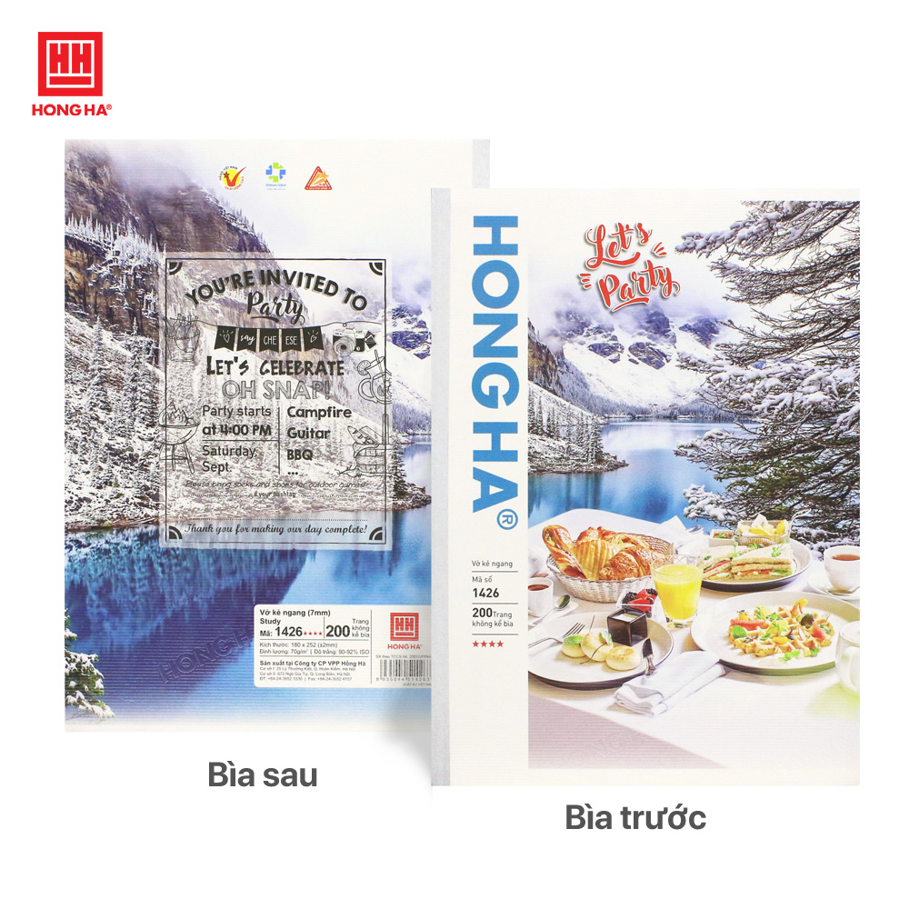 Vở kẻ ngang 200 trang Hồng Hà Let's Party 1426 được lấy cảm hứng từ bữa tiệc dã ngoại vui vẻ tạo ra bộ sản phẩm "Let's Party" nhiều màu sắc và phù hợp với xu hướng.