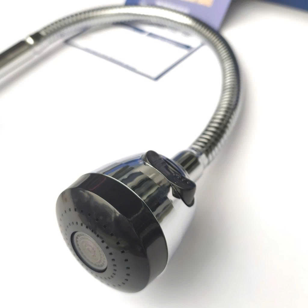 Đầu vòi xả: Dạng tăng áp mạnh mẽ, phun tia 2 chế độ, linh hoạt và tiện dụng