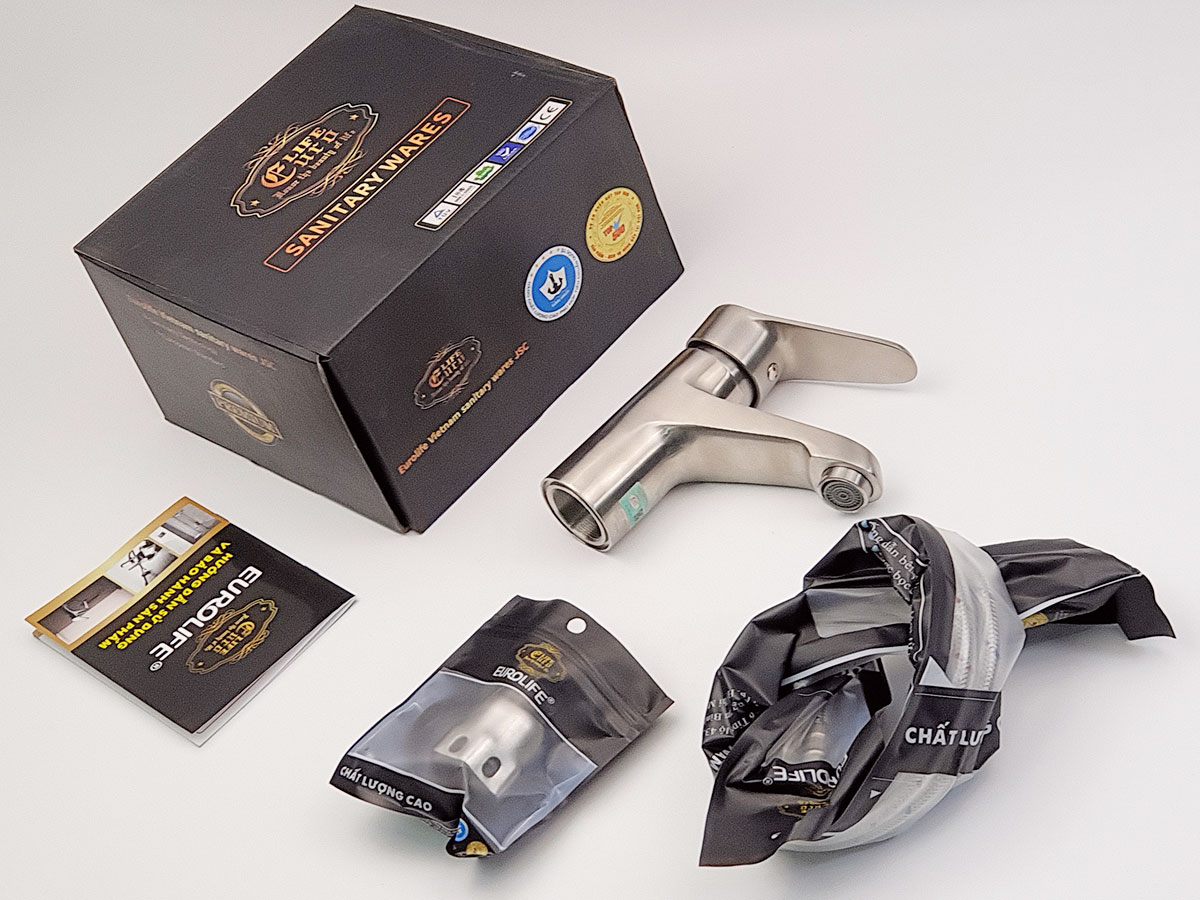 Vòi Lavabo nóng lạnh Inox SUS 304 Chrome Eurolife EL-1502 * Hãng sản xuất : Eurolife Việt Nam * Chất liệu : Sản phẩm được đúc trọng lực bằng Inox SUS 304 tinh khiết không