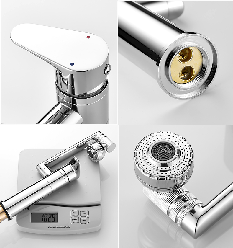 Điểm ưu việt: Thân, đầu vòi đều có thể xoay đa chiều, thân xoay sang trái, phải 720 độ. Cần vòi điều chỉnh lên cao, xuống thấp, điều chỉnh các chế độ phun chùm, phun tia, dòng bằng cách xoáy đầu vòi