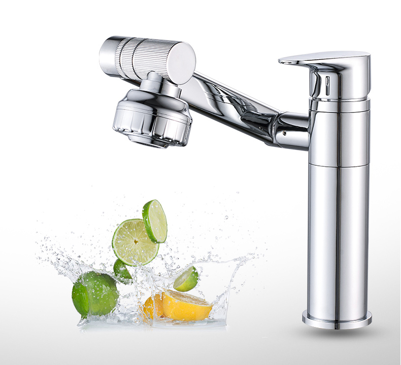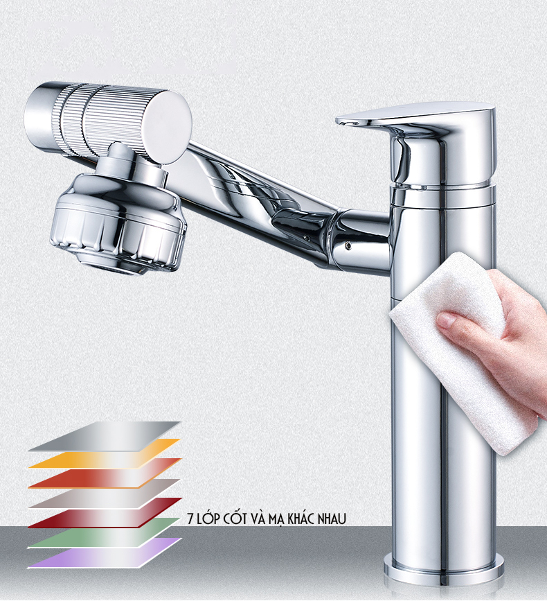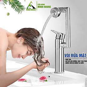 Vòi rửa mặt Lavabo cổ xoay 720 độ đa chiều, củ đồng, thân ngắn, mạ Crom, điều chỉnh nhiều chế độ tia nước Minh House