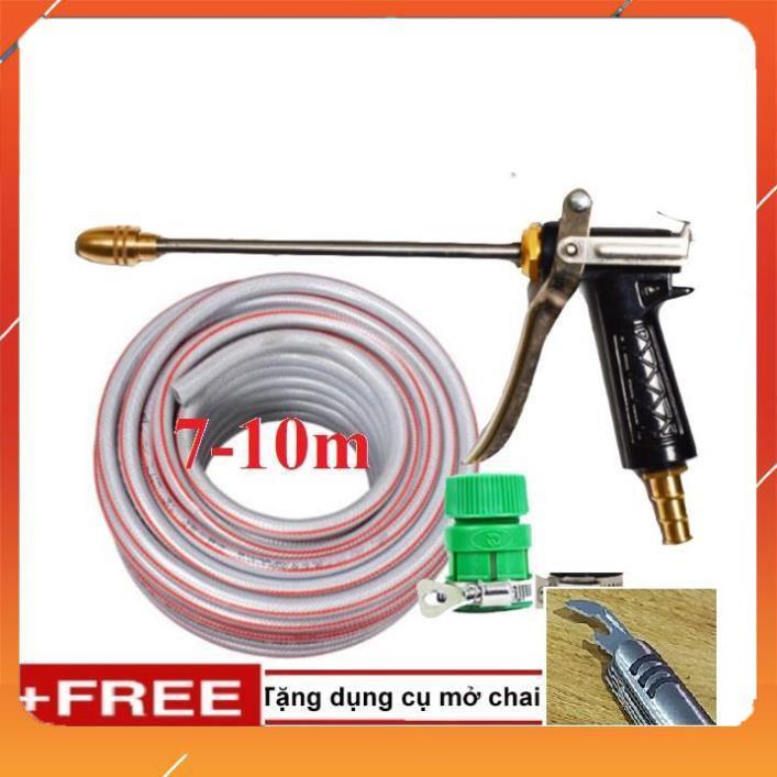 ✨Vòi Xịt️Evoucher Bộ dây vòi xịt nước rửa xe, tưới cây , tăng áp 3 lần, loại 7m, 10m 206318 đầu đồng, đai, + mở chai