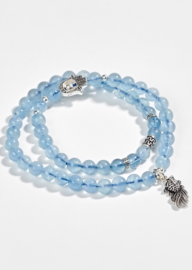 Vòng 2 Line Hải Lam Ngọc Phối Charm Cá Bạc 6mm Ngọc Quý Gemstones phù hợp với người mệnh Mộc và mệnh Thuỷ, mang lại may mắn và cải thiện sức khoẻ cho người đeo.