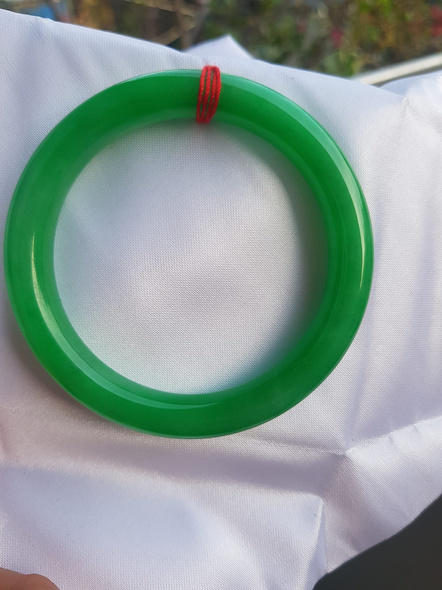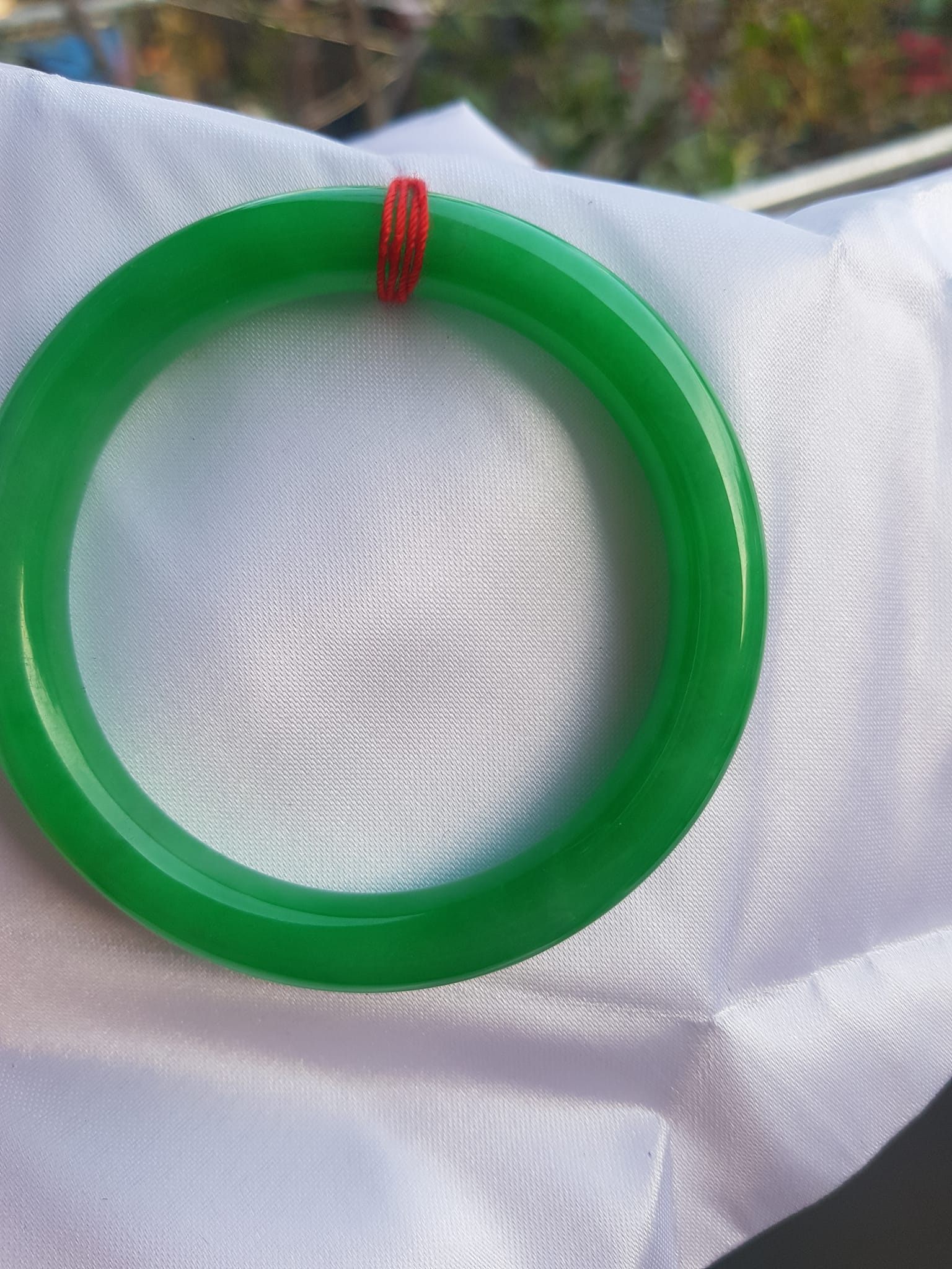 Vòng cẩm thạch Đ Lý 52mm x dầy 7,8mm màu xanh lá tươi hợp Nữ mệnh Mộc mệnh Hỏa 52kg - 56kg đeo ạ