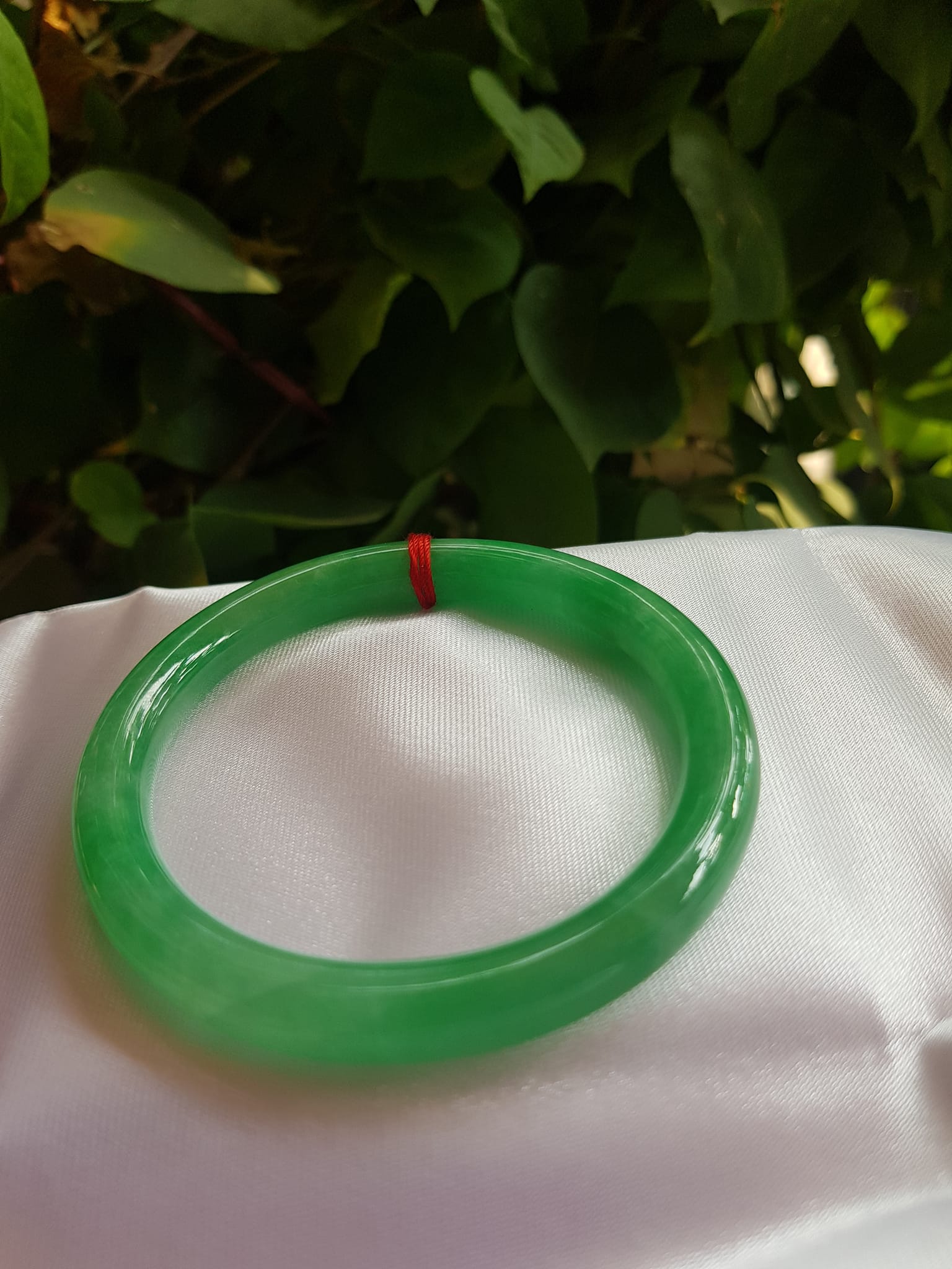 Vòng cẩm thạch Đ Lý 52mm x dầy 7,8mm màu xanh lá tươi hợp Nữ mệnh Mộc mệnh Hỏa 52kg - 56kg đeo ạ
