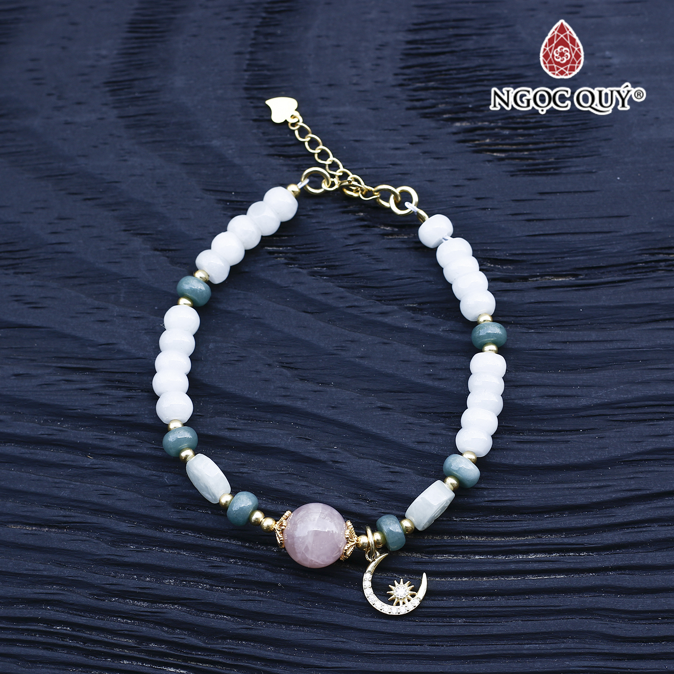 - Vòng Tay Thạch Anh Dâu Mix Tím Ngọc Charm Hoa Mặt Trời Ngọc Quý Gemstones VT109 mang màu hồng nhẹ nhàng, chứa năng lượng bổ trợ mạnh mẽ về tình duyên, cải thiện các