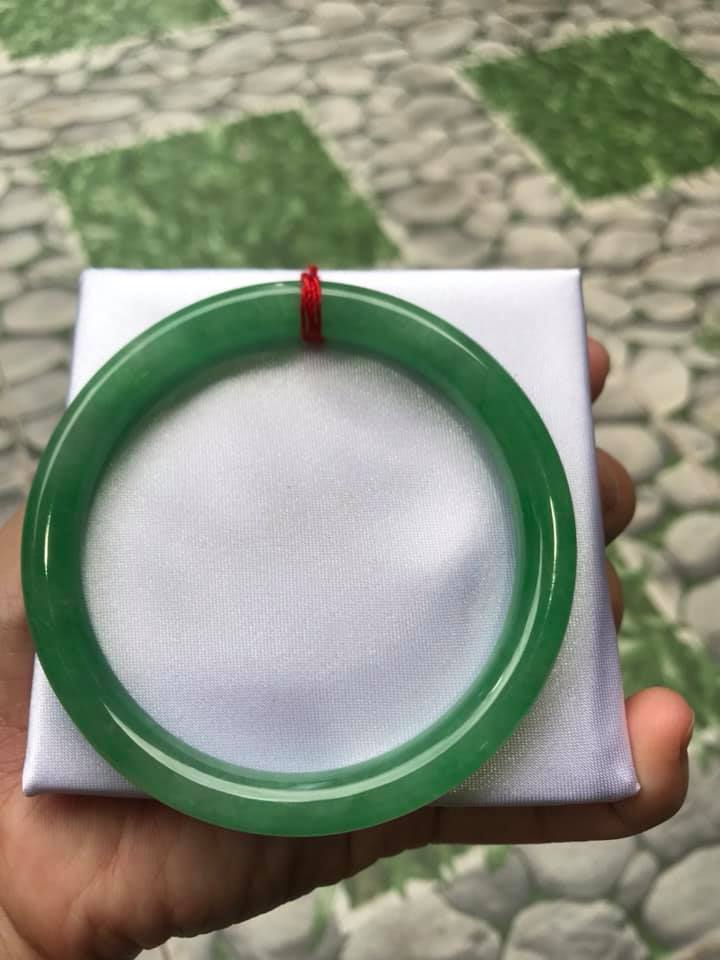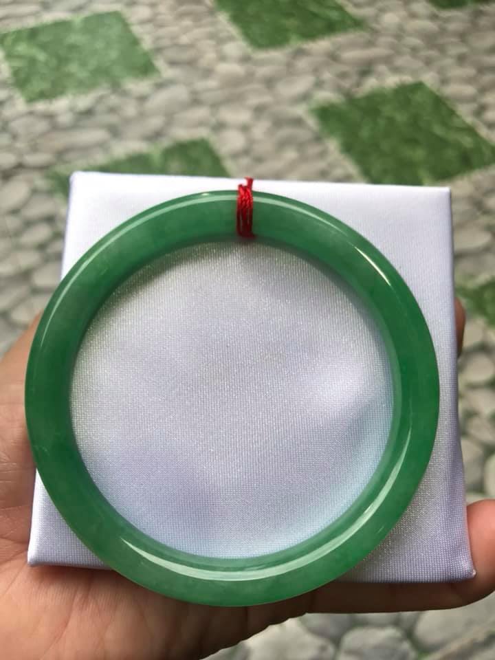 Vòng cẩm thạch Đ Lý 52mm x dầy 7,8mm màu xanh lá tươi hợp Nữ mệnh Mộc mệnh Hỏa 52kg - 56kg đeo ạ