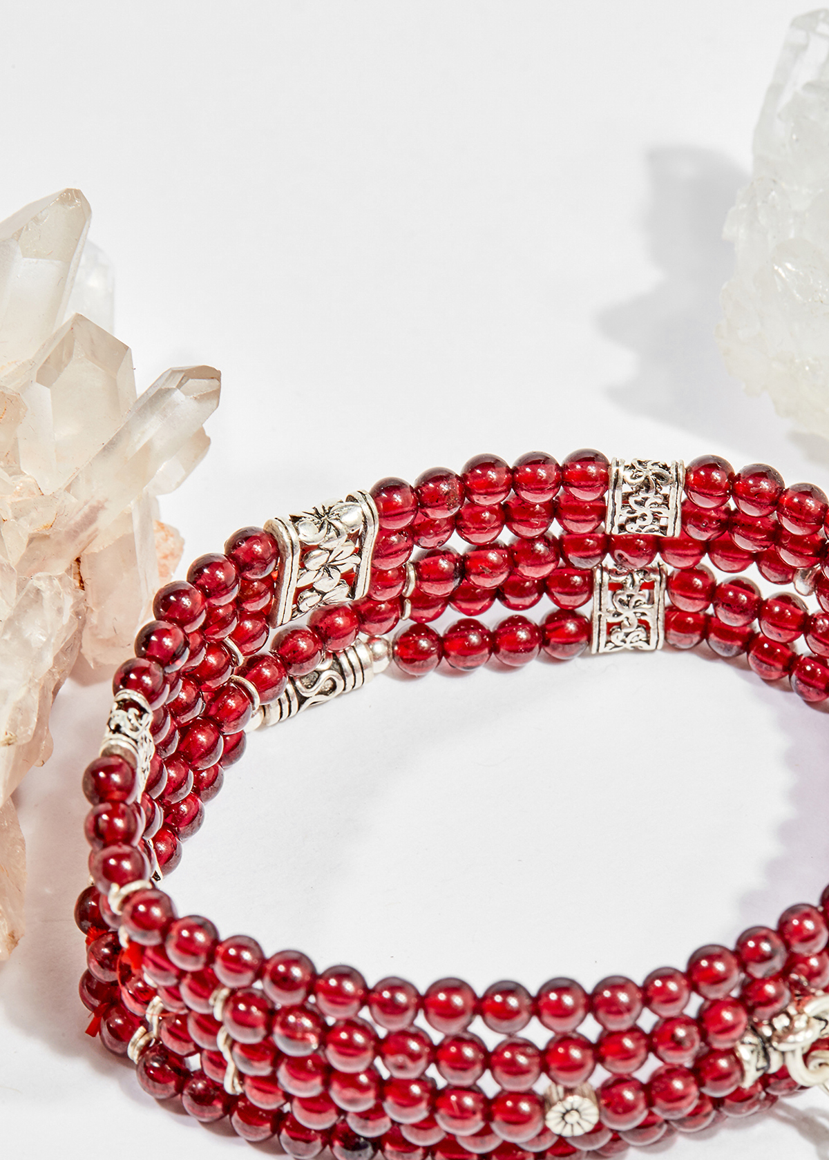 Đá Garnet lặng lẽ lấy đi sự sợ hãi và bóng tối sâu thẳm trong tâm hồn, bài trừ năng lượng tiêu cực và hướng chúng ta đến với tình yêu thương vô tận. Người đeo sẽ được khơi dậy lòng can đảm để luôn cảm thấy tự tin và mạnh mẽ khi phải đương đầu với các thử thách hoặc thay đổi trong cuộc sống.