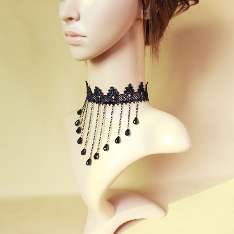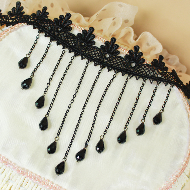 ✨Vòng cổ choker ren vải chuỗi hạt mưa châu đen