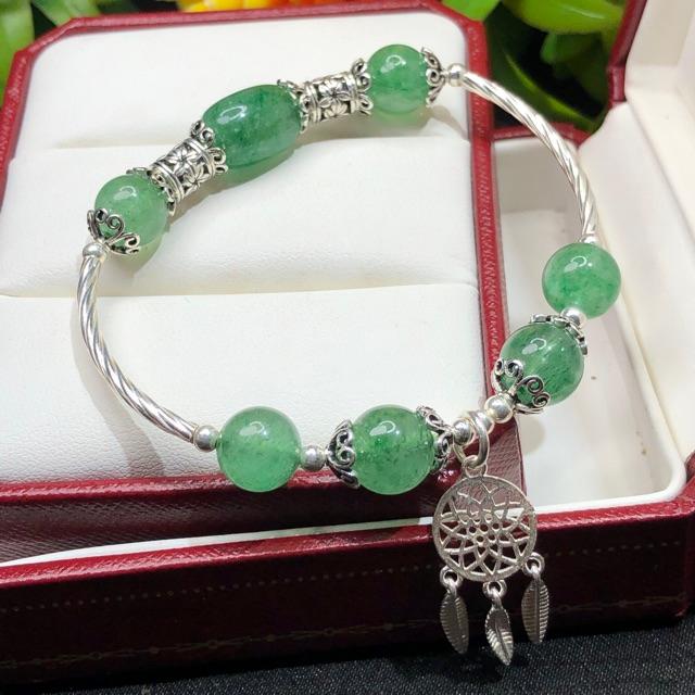 Vòng tay đá thạch anh tóc xanh phối charm bạc - Hợp mệnh mộc, hỏa | Ngọc Quý Gemstones |