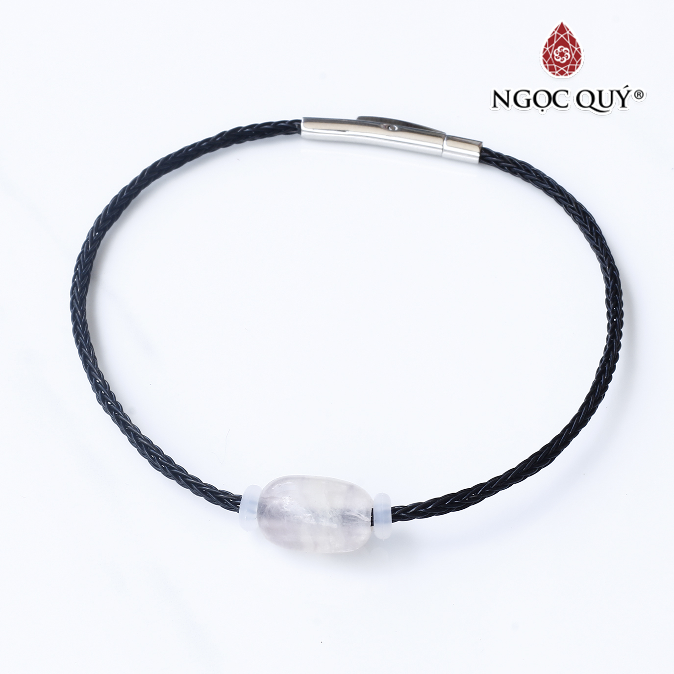Vòng tay Lu Thống đá THẠCH ANH HỒNG mix dây thép bọc vải