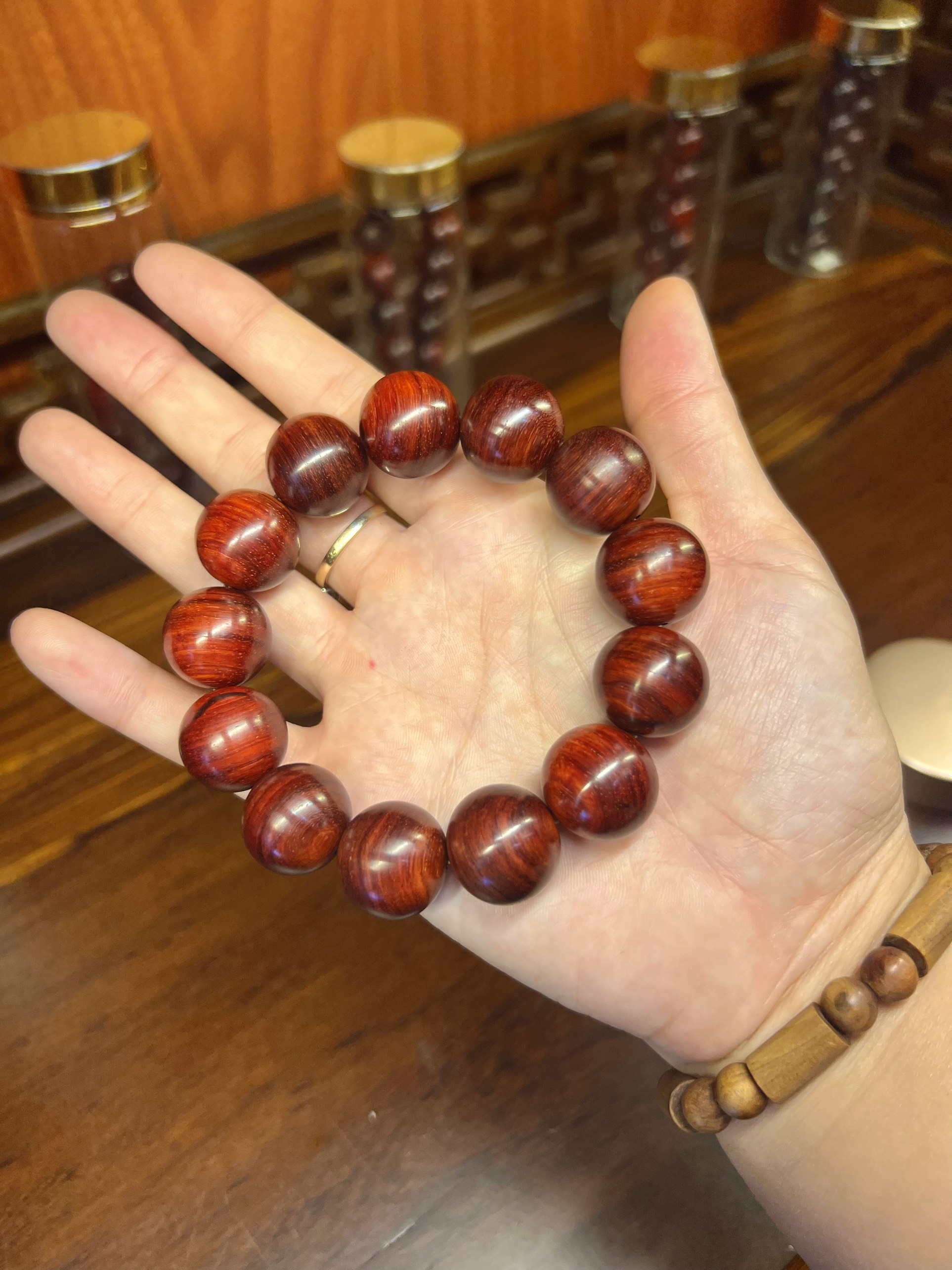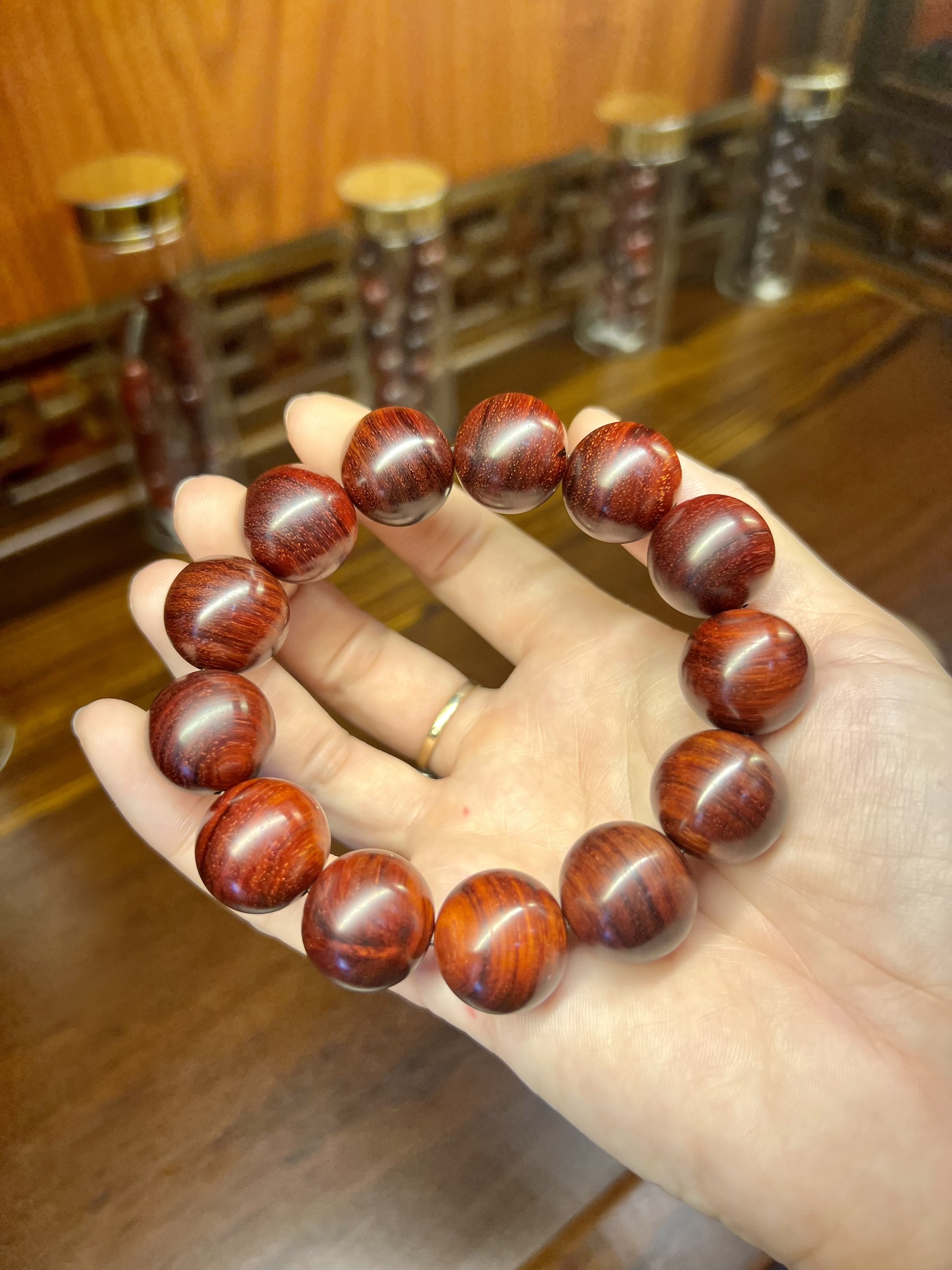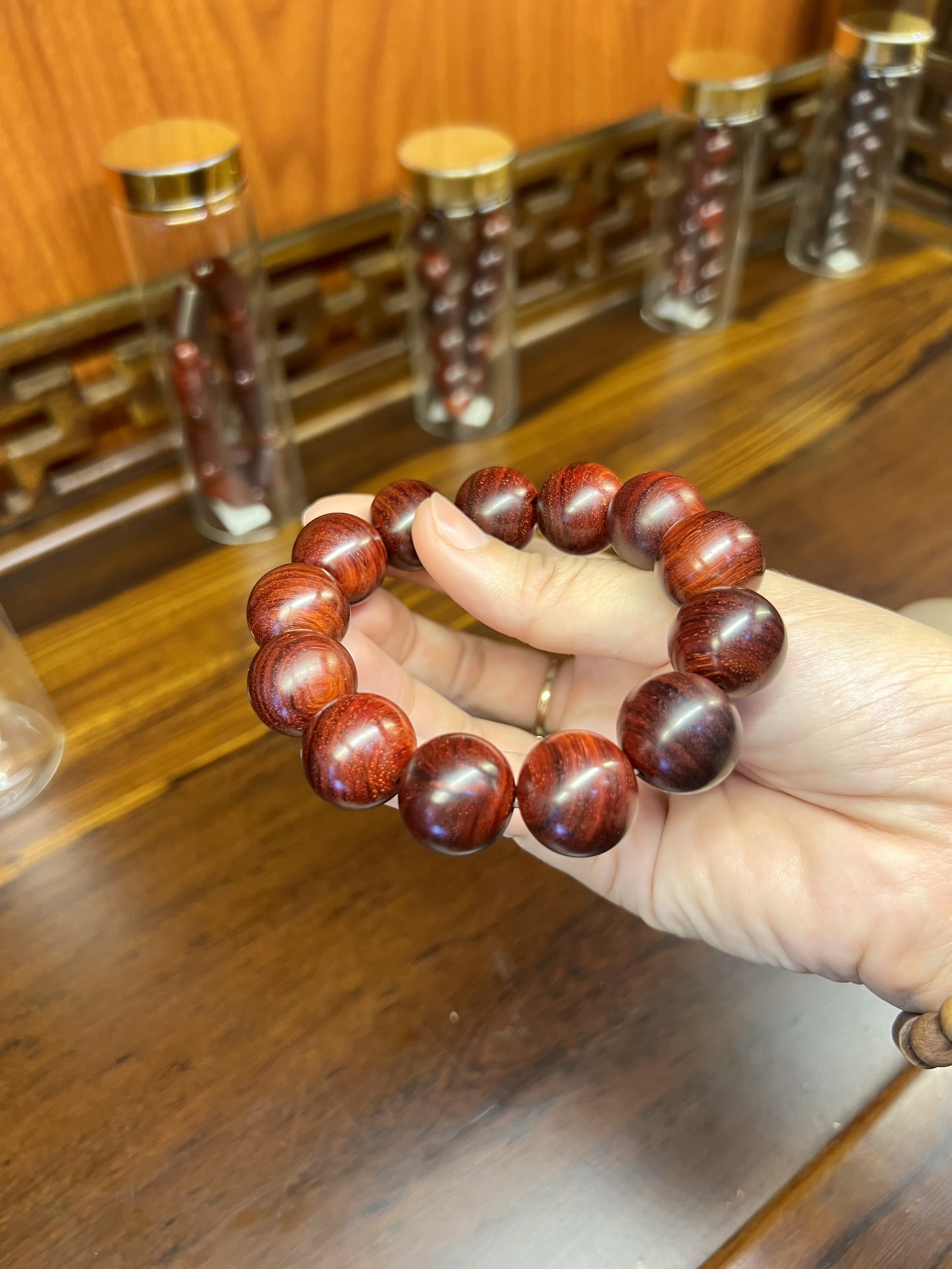 Tiểu Điệp Tử Đàn lá nhỏ sinh trưởng tại Ấn Độ lõi nặng như đá, đỏ tự nhiên ko đánh bóng, khi soi đèn pin có lên sao, ánh vàng rất đẹp.