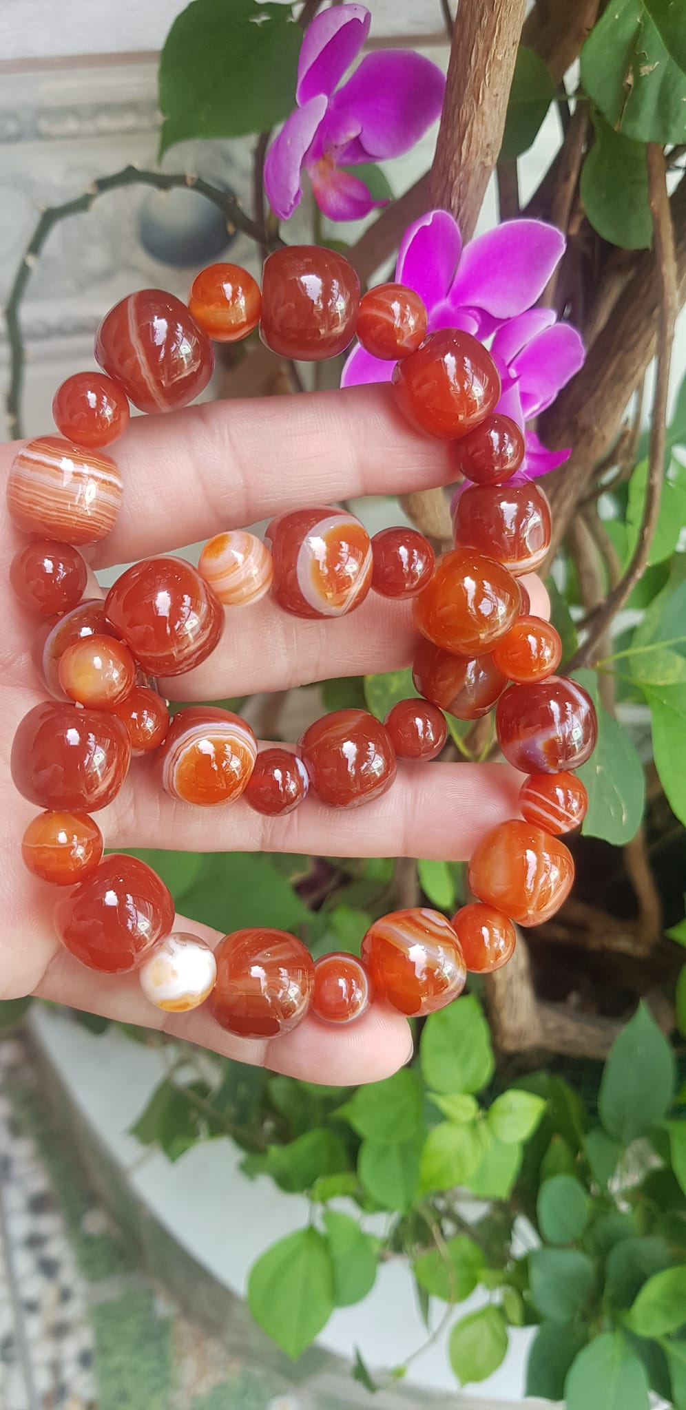 ✨Vòng mã não đỏ kiểu hạt bầu tròn to 15mm nhỏ 10mm màu đỏ vân đẹp nam nữ mệnh hỏa mệnh thổ đeo đẹp ạ