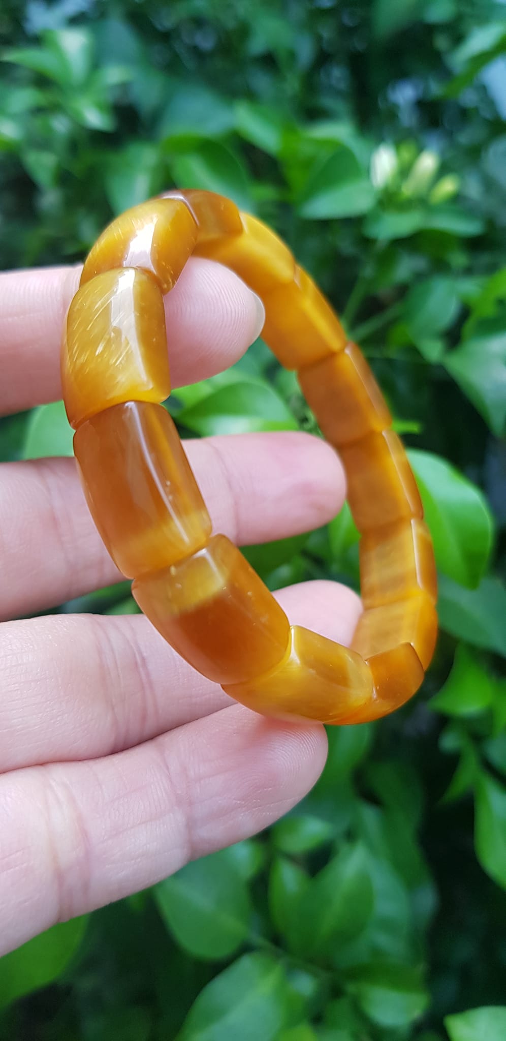 Vòng tay lu thống đá mắt hổ vàng nâu hợp mệnh kim và mệnh thổ
