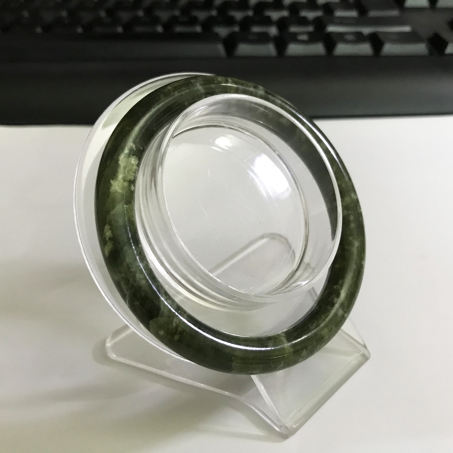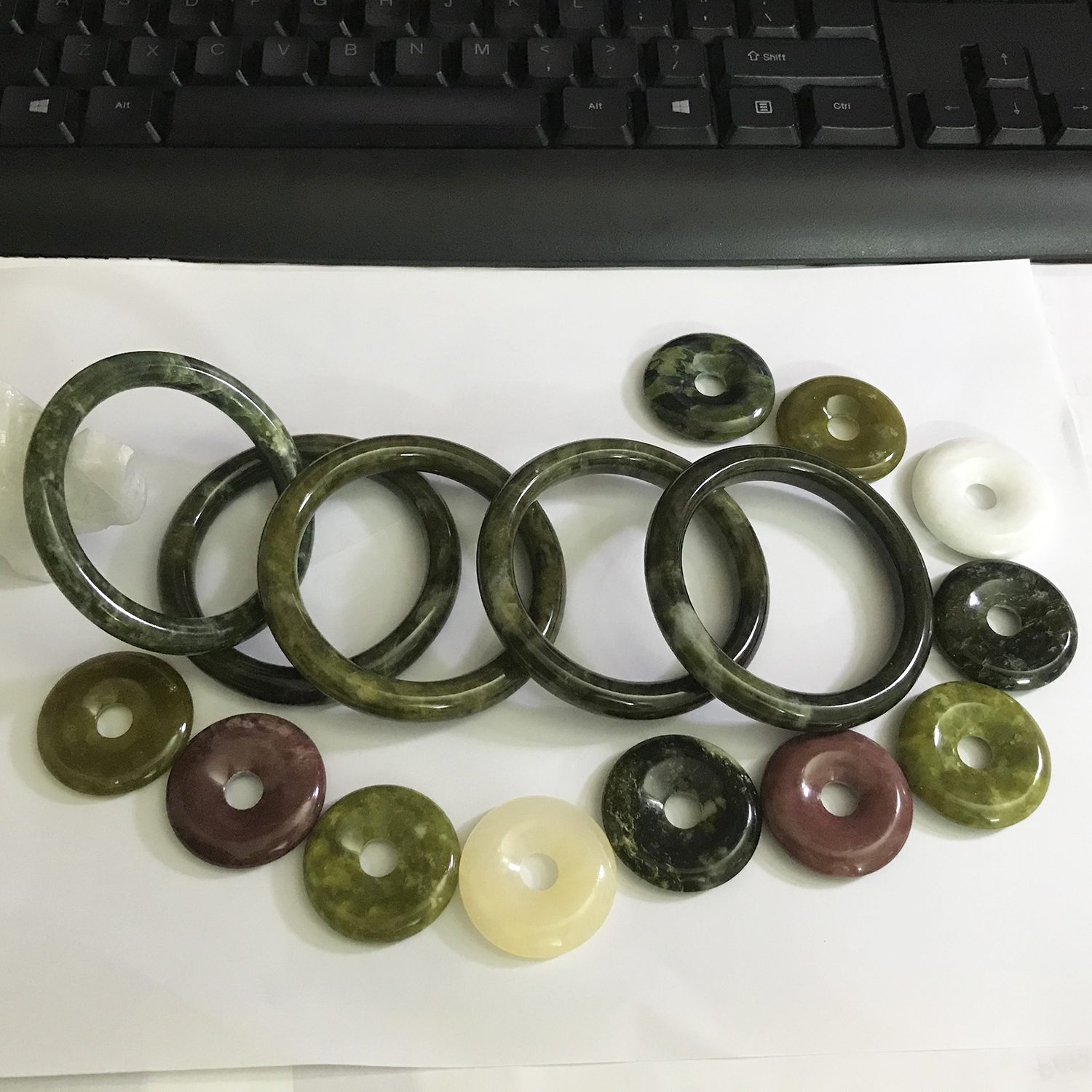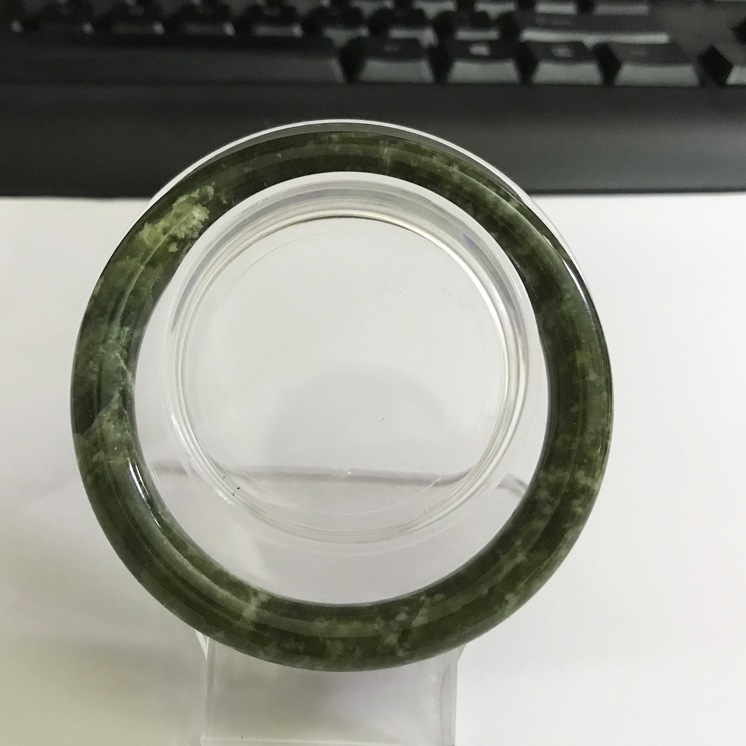 1.Vòng tay: ngọc serpentione một trăm phần trăm từ đá thật đá tự niên của VN chế tác thủ công tại Yen Bai 2.Màu xanh lá đậm, bóng láng như hình thích hợp nhất cho người mệnh Hỏa và Mộc 3.Kích thước: đủ size từ size 5.5 đến 6.0 cm 4.Kiểu dáng: bản đũa tức là tròn như chiếc đũa Tác dụng: Đá ngọc thật có tác dụng giảm căng thẳng, chúng nằm trong lòng đất hàng triệu năm do quá trình biến đổi nhiệt tạo thành nên trong bản thân rất nhiều năng lượng dương có thể hóa giải các sóng có hại và làm ổn định sóng sinh học của cơ thể, giúp cơ thể hoạt bát và cân bằng. Sự dao động tinh thể càng cao thì càng tốt cho sức khỏe con người. Vì vậy, mang đá bên mình, để ở nơi làm việc và để trong không gian sống … có tác dụng thanh lọc và hỗ trợ tích cực cho bản thân người dùng “ Gia hữu thạch tất hưng, nhân hữu thạch tất khang” 5. CÁCH ĐO NI ( KICH THƯỚC ) GÙ TAY BÀN ĐỂ CHỌN VÒNG ĐÚNG SIZE Nếu có thước đây thì bạn lấy thước đây, nếu không có thước dây thì bạn cắt miếng giấy hay vật tương tự miếng giấy (không co giãn), miếng giấy cắt dài cỡ 25 cm rộng cỡ 1cm, sau đó bạn cuốn xung quanh mu/ gù bàn tay cần đeo ( tức là chỗ to nhất của bàn tay khi bạn khum bàn tay lại ( với mục đích là để cho vòng lọt qua chỗ gù bàn tay). Khi hai đầu dây chạm vào nhau thì bạn đánh dấu lại và đo xem nó dài bao nhiêu. Chiều dài của sợi dây đo được chính là chu vi vòng tay của bạn. Được bao nhiêu bạn đối chiếu số liệu dưới đây Chu vi tay 16 cm thì size 5.0 cm / Chu vi tay 17 cm thì size 5.2  cm Chu vi tay 18 cm thì size 5.4 cm/ Chu vi tay 19 cm thì size 5.6 cm Chu vi tay 20 cm thì size 5.8 cm/ Chu vi tay 21 cm thì size 6.0 cm Chu vi tay 22 cm thì size 6.2 cm/ Chu vi tay 23 cm thì size 6.4 cm