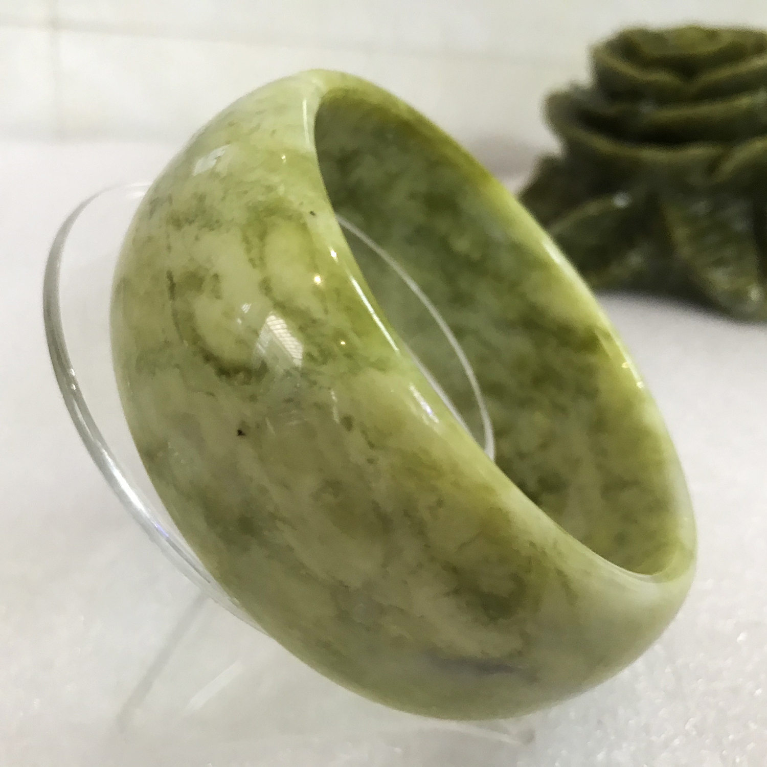 ✨Vòng tay cẩm thạch tự nhiên màu xanh cốm bản dày 3cm size 6.7cm cho người mệnh Hỏa và Mộc. VONGNGOCCOM.6.7cm