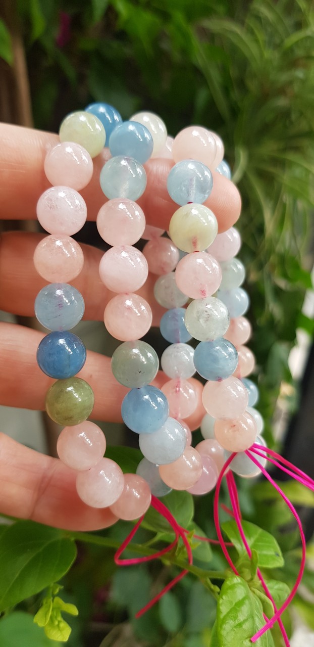 Vòng tay chuỗi đá Beryl tự nhiên đa sắc màu tươi sáng bóng mượt đẹp size hạt 9mm là sự phối hợp tông màu hồng ngọt ngào với xanh dương xanh nước biển đậm nữ đeo tay đẹp xinh tay may mắn tốt cho sức khỏe công việc tài lộc