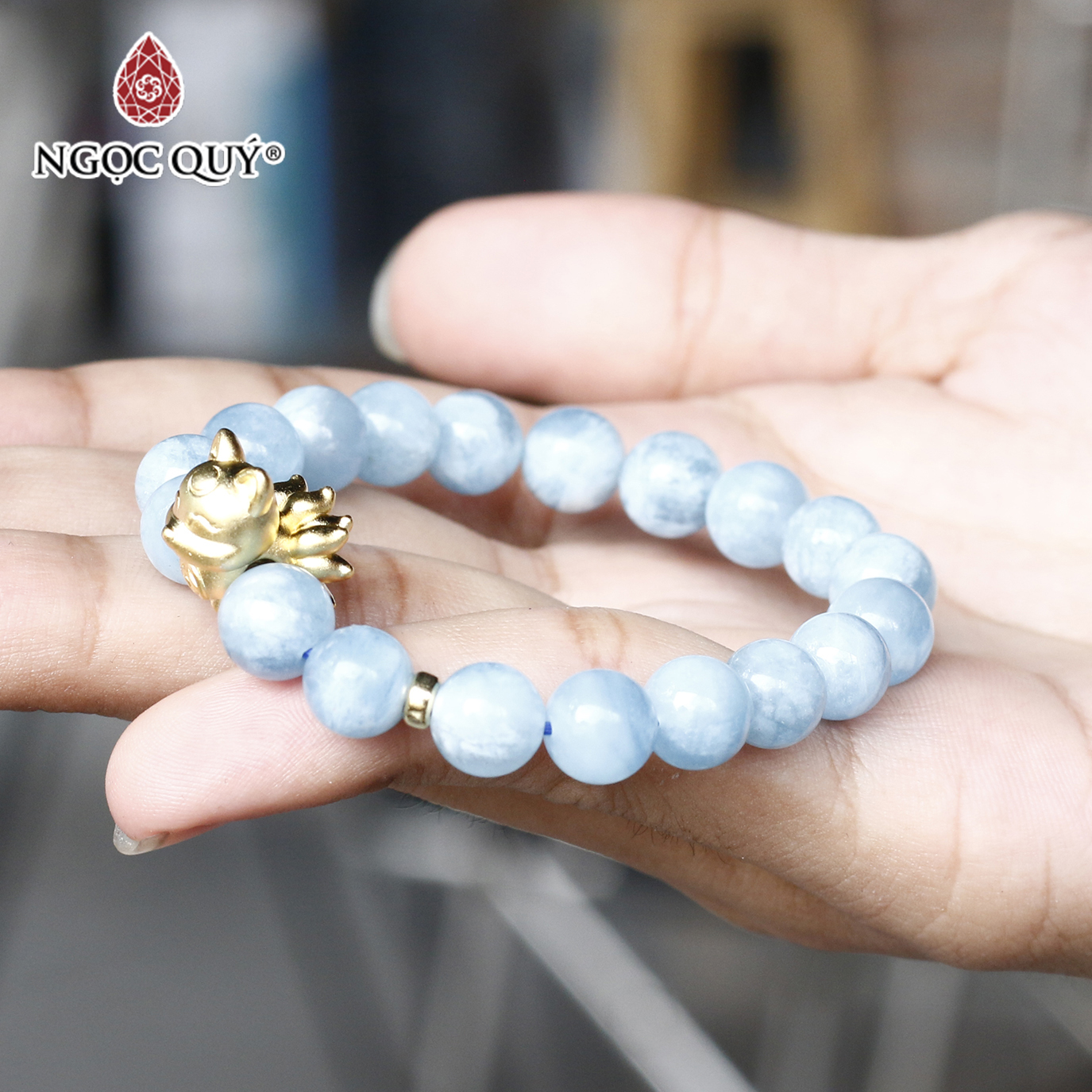 VÒNG TAY ĐÁ AQUAMARINE PHỐI HỒ LY MẠ VÀNG: