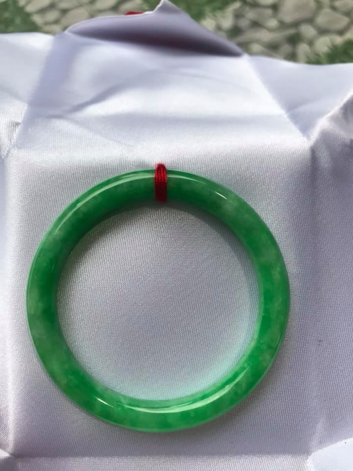 Vòng Tay Đá Cẩm Thạch Đậu Đẹp size 48mm x dầy 7mm Màu Xanh Lá Đậu Bóng Rất Là Đẹp Nữ tay nhỏ Nữ mệnh mộc hỏa thủy 35kg - 49kg đeo ạ