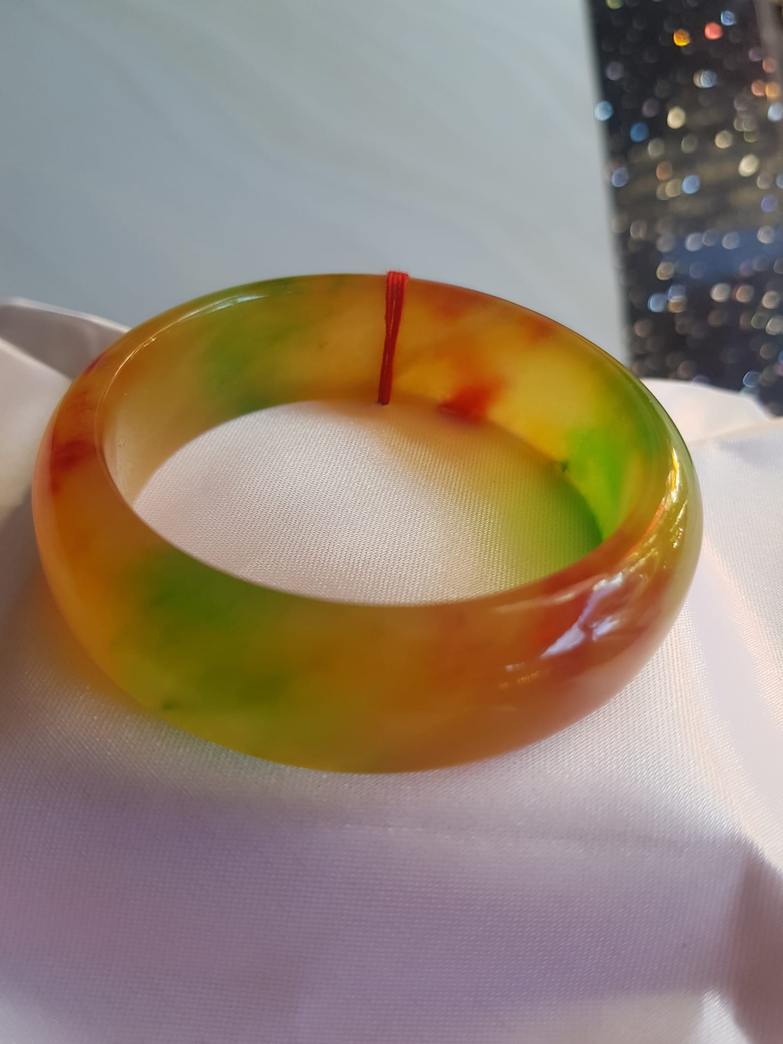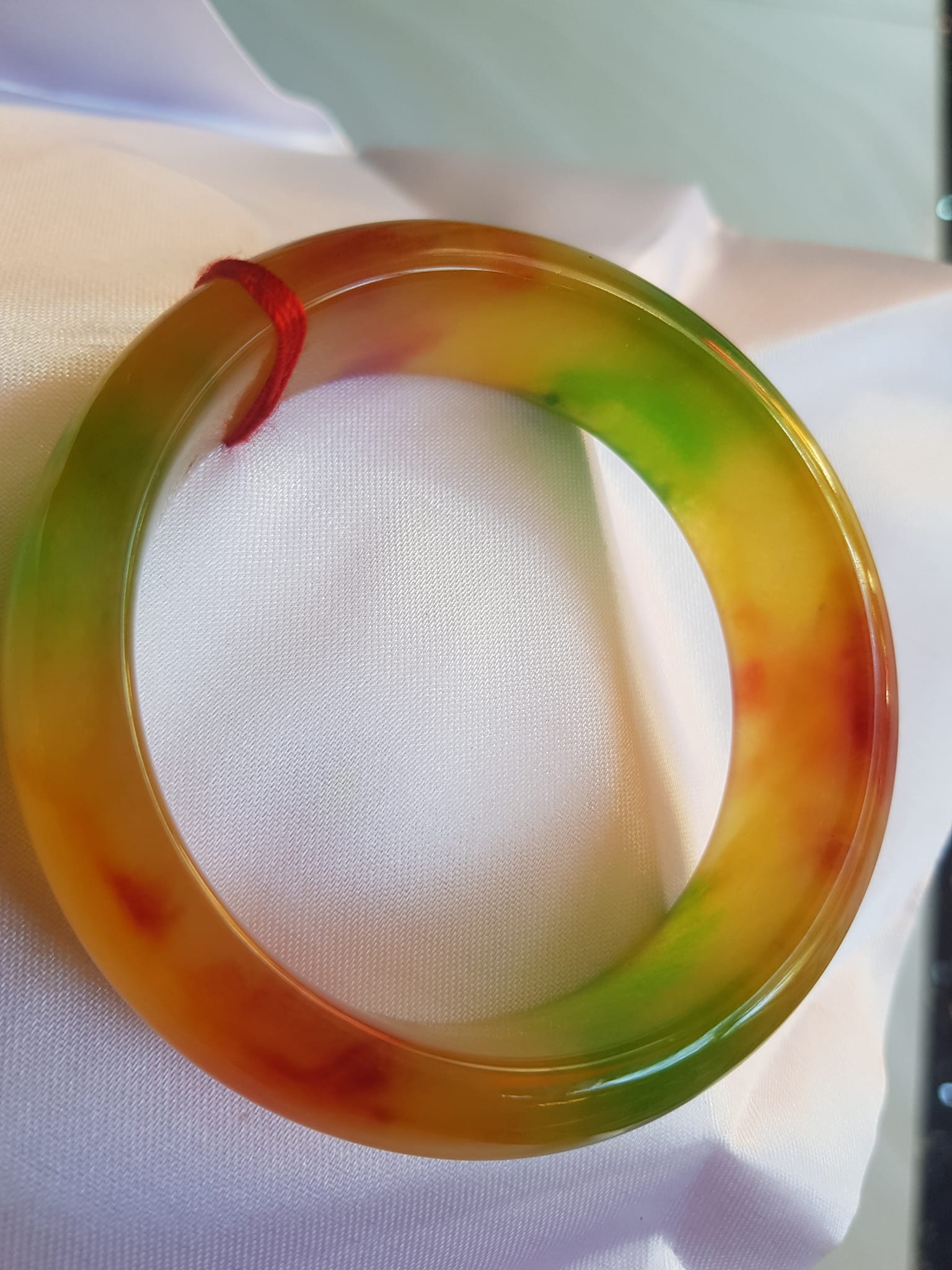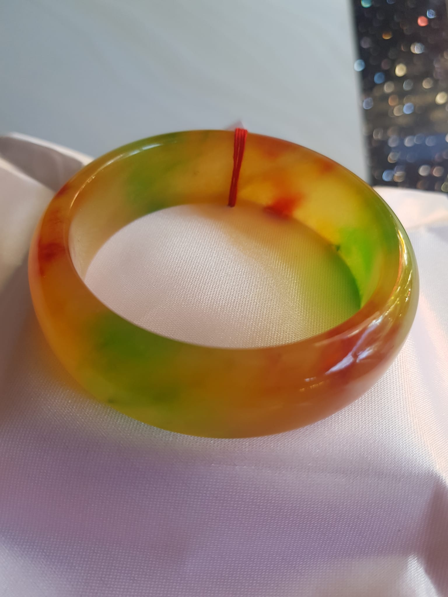 ✨Vòng Tay Đá Cẩm Thạch Hẹ Bản 58 VĐX màu vàng đỏ xanh bóng đẹp Size 58mm x cao 18mm x dầy 8,5mm Nam Nữ mệnh Thổ mệnh Kim 57kg - 67kg đeo ạ
