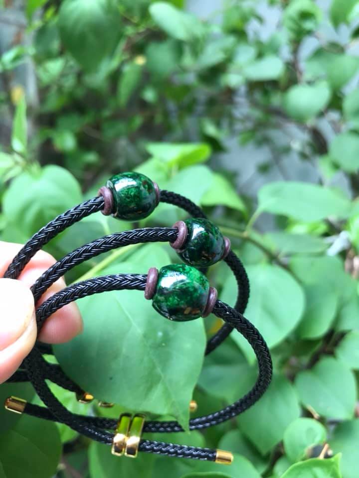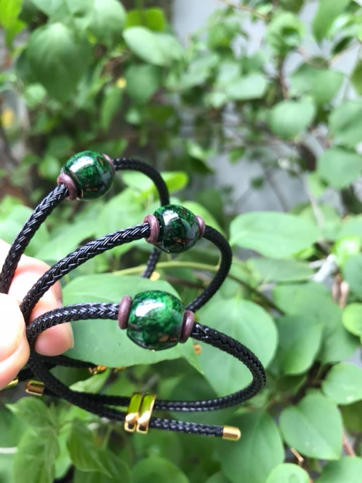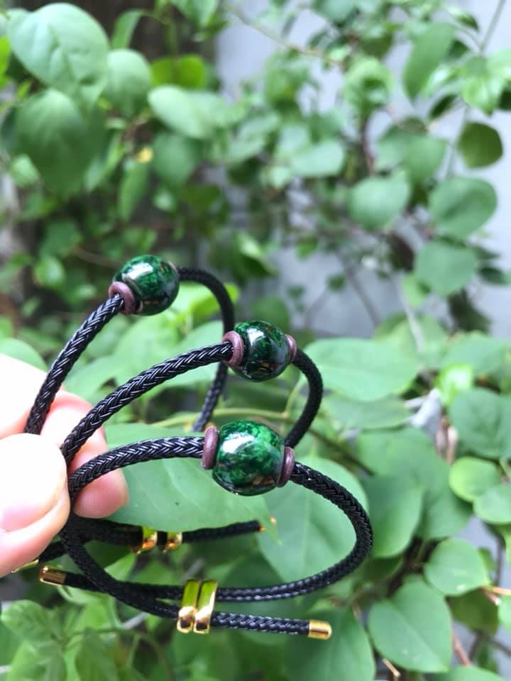 ✨Vòng Tay Đá Cẩm thạch lu TRÒN xanh đậm dây đen kiểu xinh xắn bóng đẹp lắm Chất liệu hạt lu 100% đá cẩm thạch tự nhiên Hợp Nữ mệnh Thủy, Mộc, Hỏa ạ