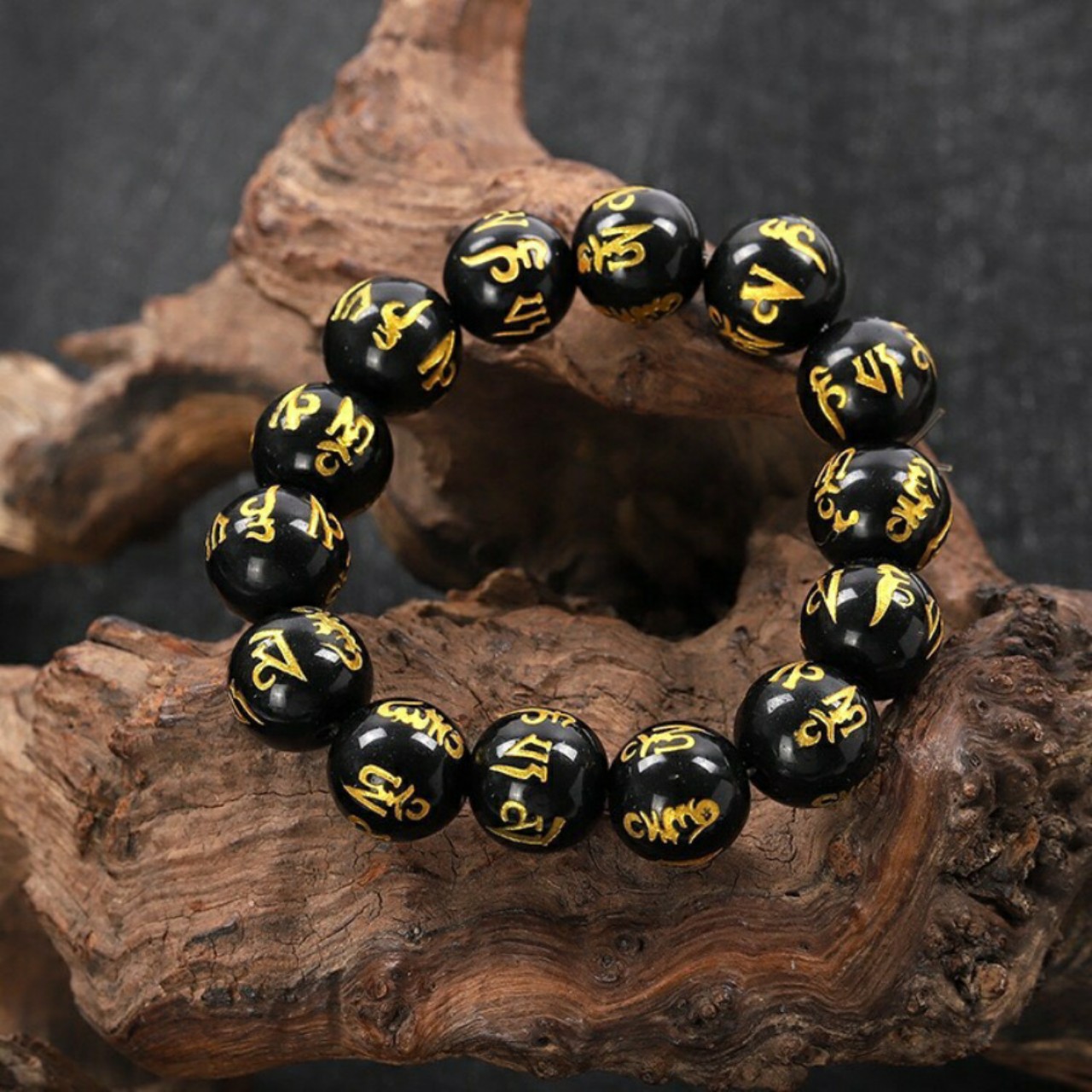 ✨VÒNG TAY ĐÁ MÃ NÃO ĐEN KHẮC OM MANI PADME HUM 16 ly