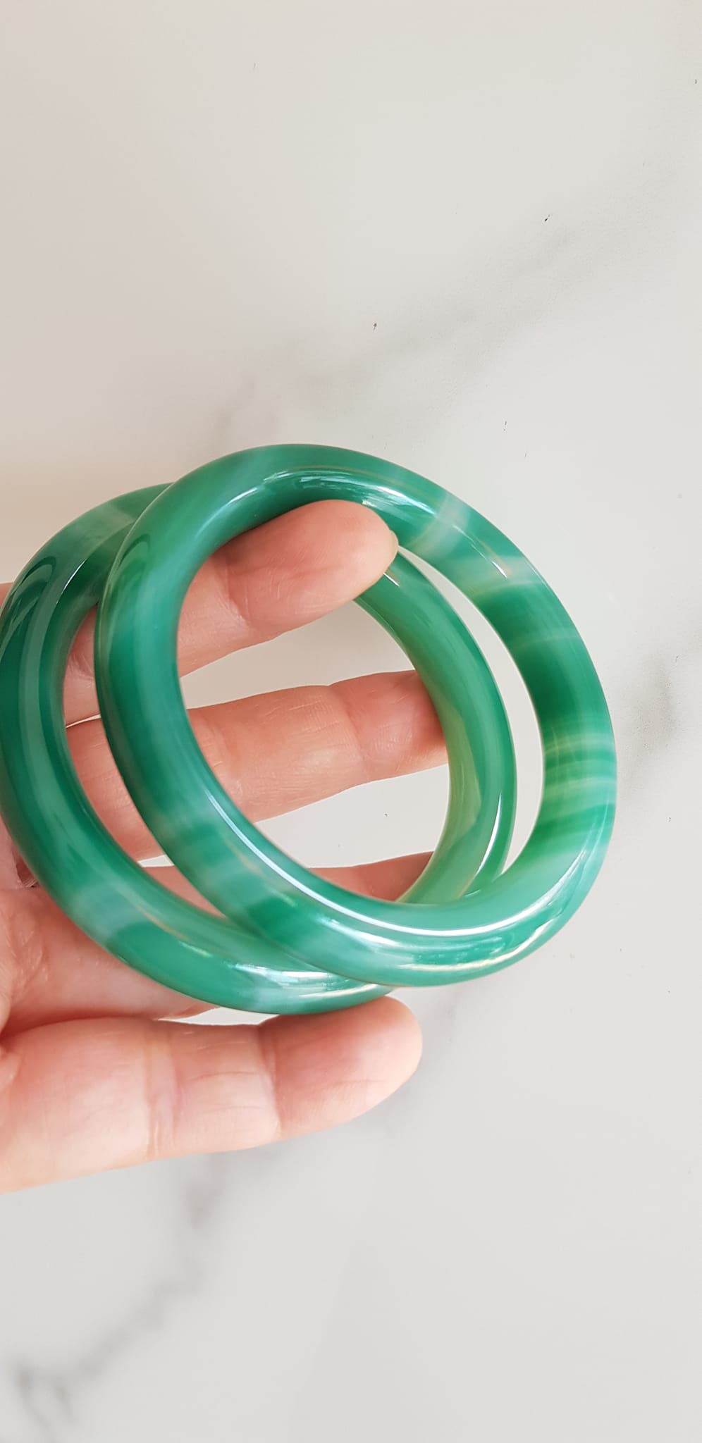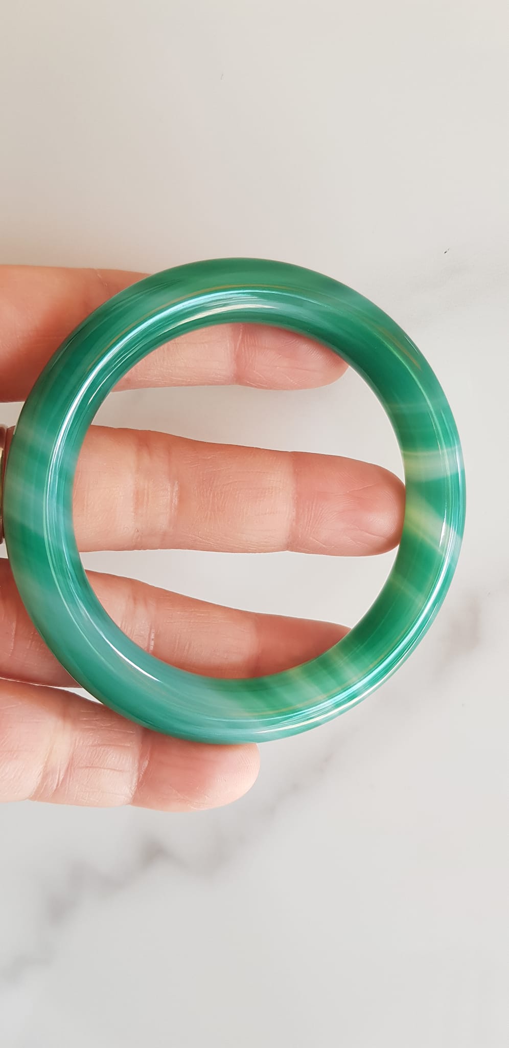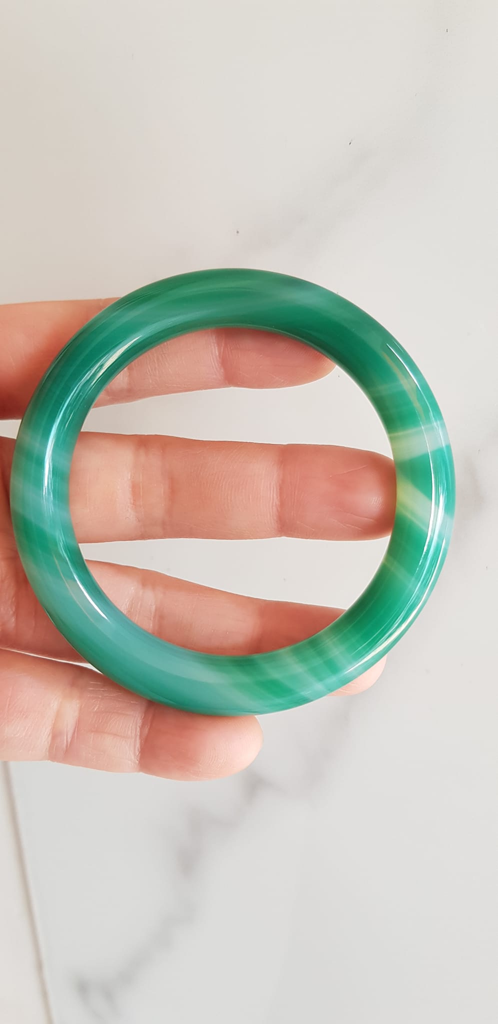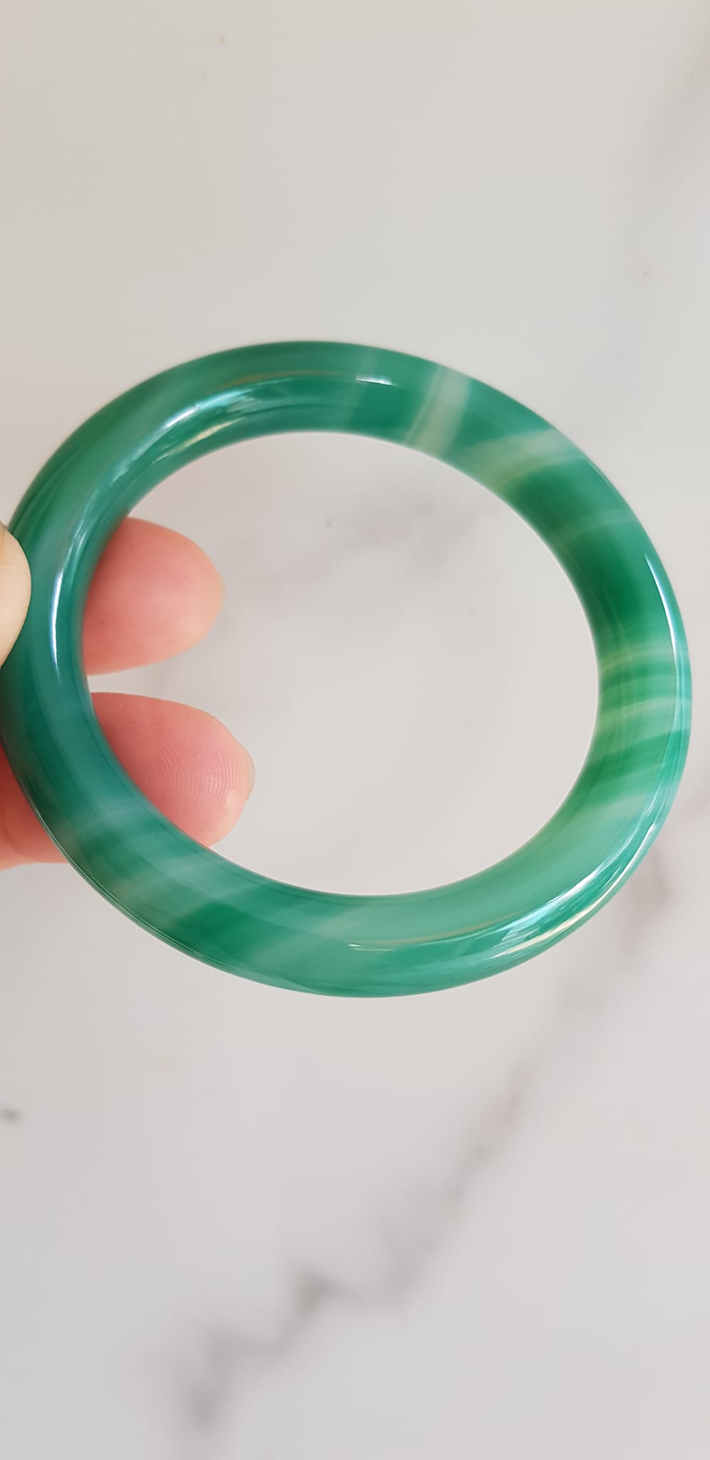 ✨Vòng tay đá mã não xanh vân sọc trắng nhẹ mới Ni 53mm x cọng 9mm Vòng màu xanh ngọc đậm đều vân sọc đẹp ạ Nữ 52kg - 58kg đeo mệnh Mộc hỏa thủy ạ