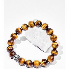 6001 - Vòng Tay Đá Mắt Hổ Vàng Nâu Như Ý 7A( loại 1) 10 ly + Nghê Bạc mạ Vàng