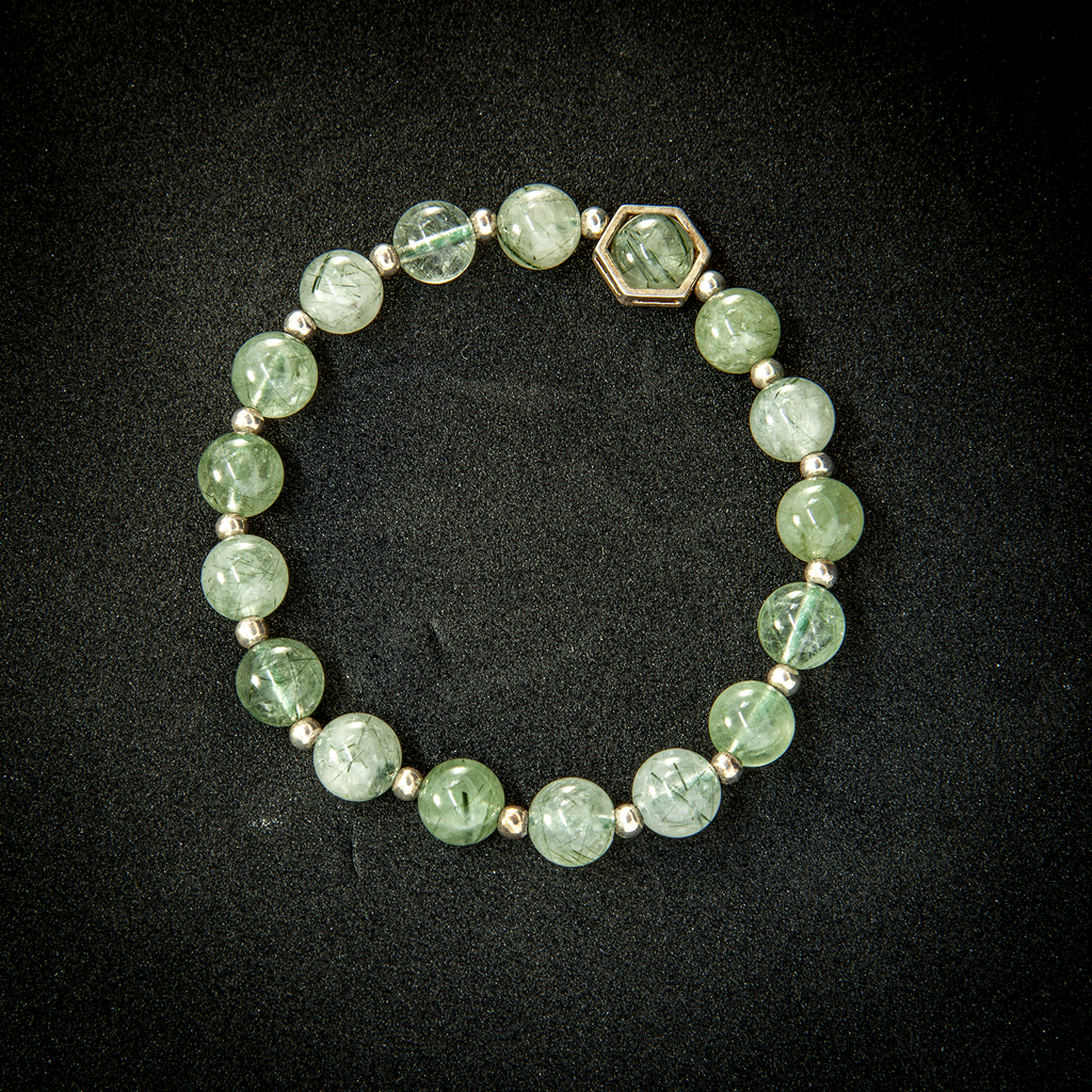 Vòng Thạch Anh Ưu Linh Xanh Phối Hoa Thạch anh xanh Đá Thạch Anh Xanh (Green Aventurine) còn được gọi là “Đá của Cơ Hội”, nó được cho là loại đá mang lại may mắn