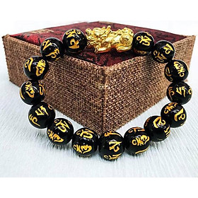 Vòng tay đá thạch anh đen khắc kinh phật mix Tỳ hưu MS253, Vòng tay phong thủy hợp mệnh Thủy, Mộc, Thổ cho nam và nữ