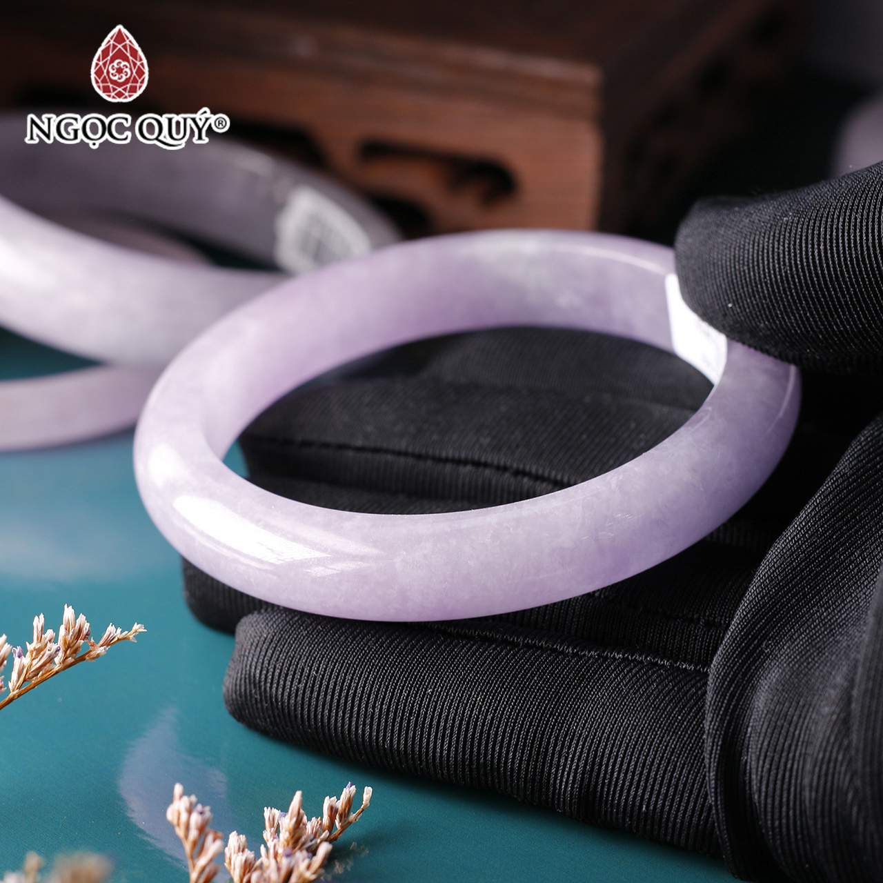 Vòng tay Nữ Đá Cẩm Thạch mới TR Lý 57 mm x cọng 7,5mm Màu Xanh lý tươi trắng 2 bên đều vòng đẹp Nữ 55kg - 64kg đeo đẹp món quà tặng chính mình