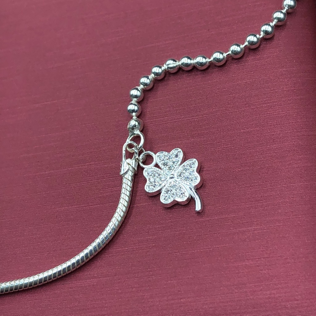 Vòng Tay Lắc Tay Nữ Bạc Ta Dây Mì Bi Cỏ 4 Lá May Mắn Bạc Hiểu Minh LTU575